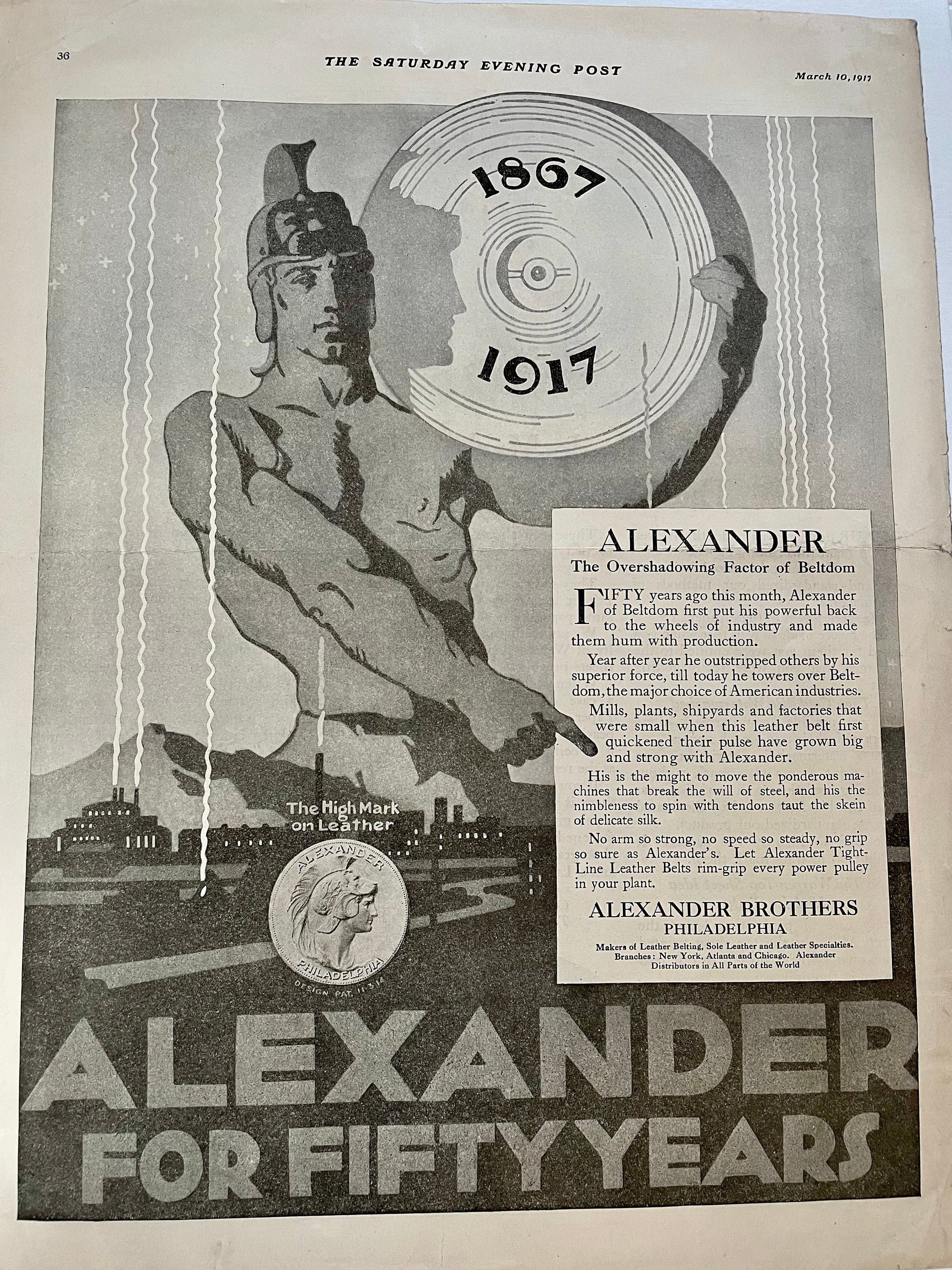 1917 Original Alexander Brothers Philadelphia full page leather advertisement from a 1917 issue of The Saturday Evening Post