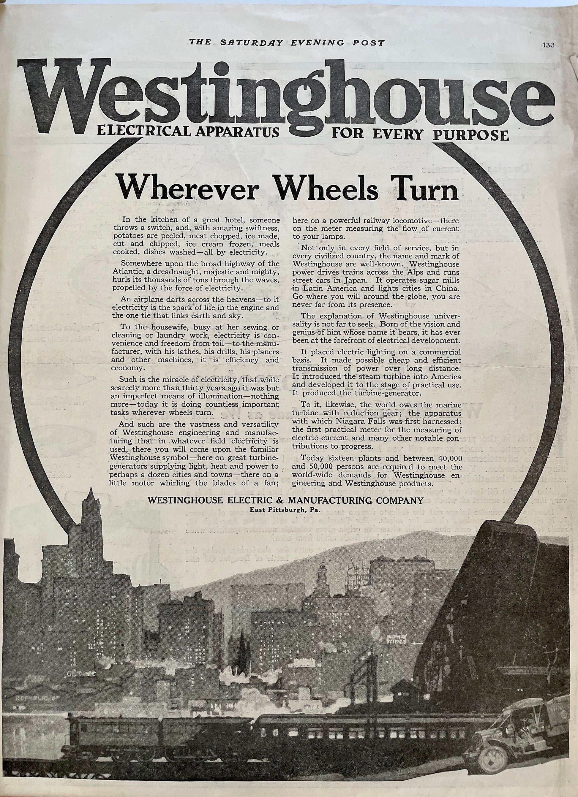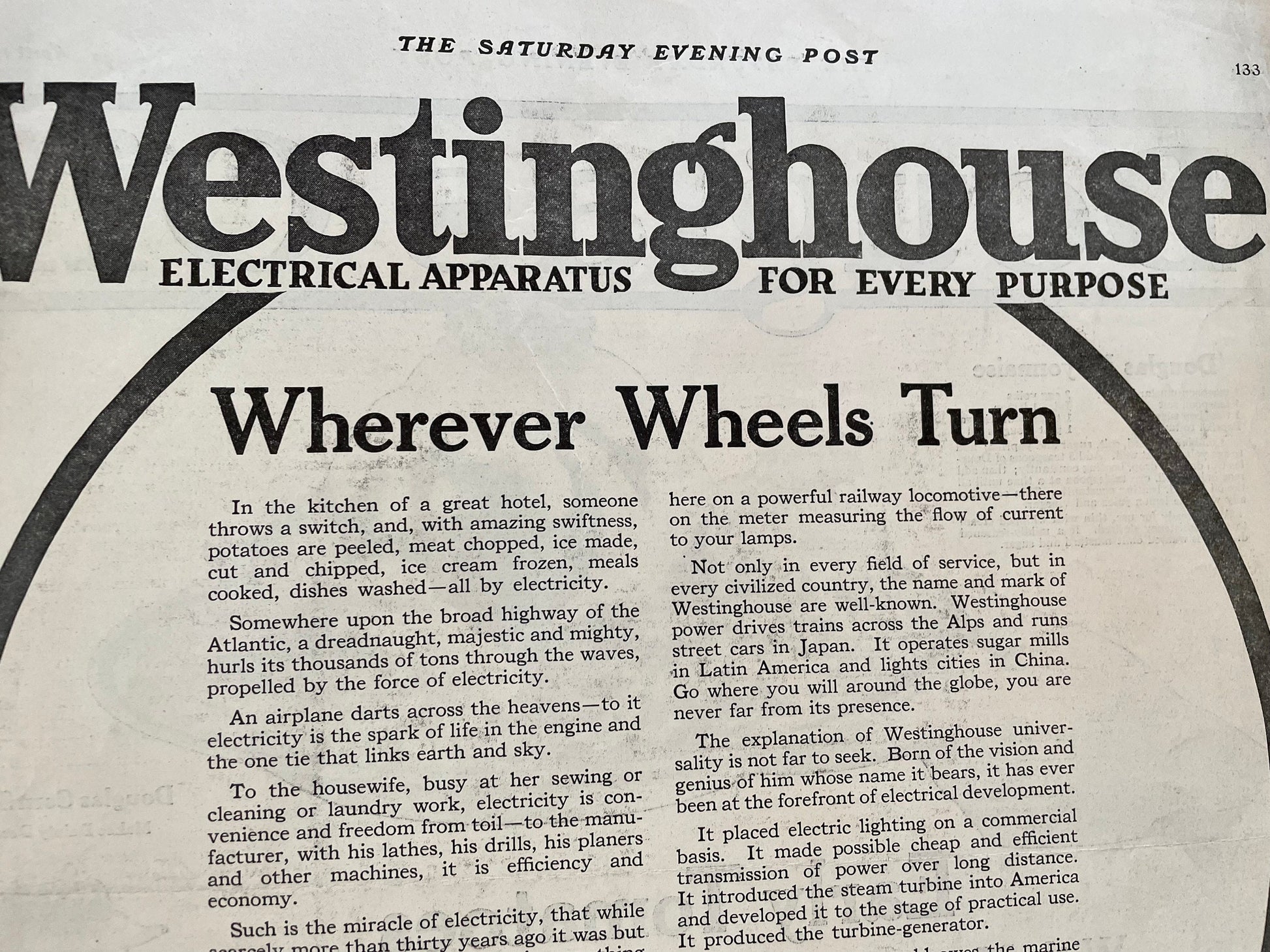 1919 Original Westinghouse ad from a 1919 issue of The Saturday Evening Post