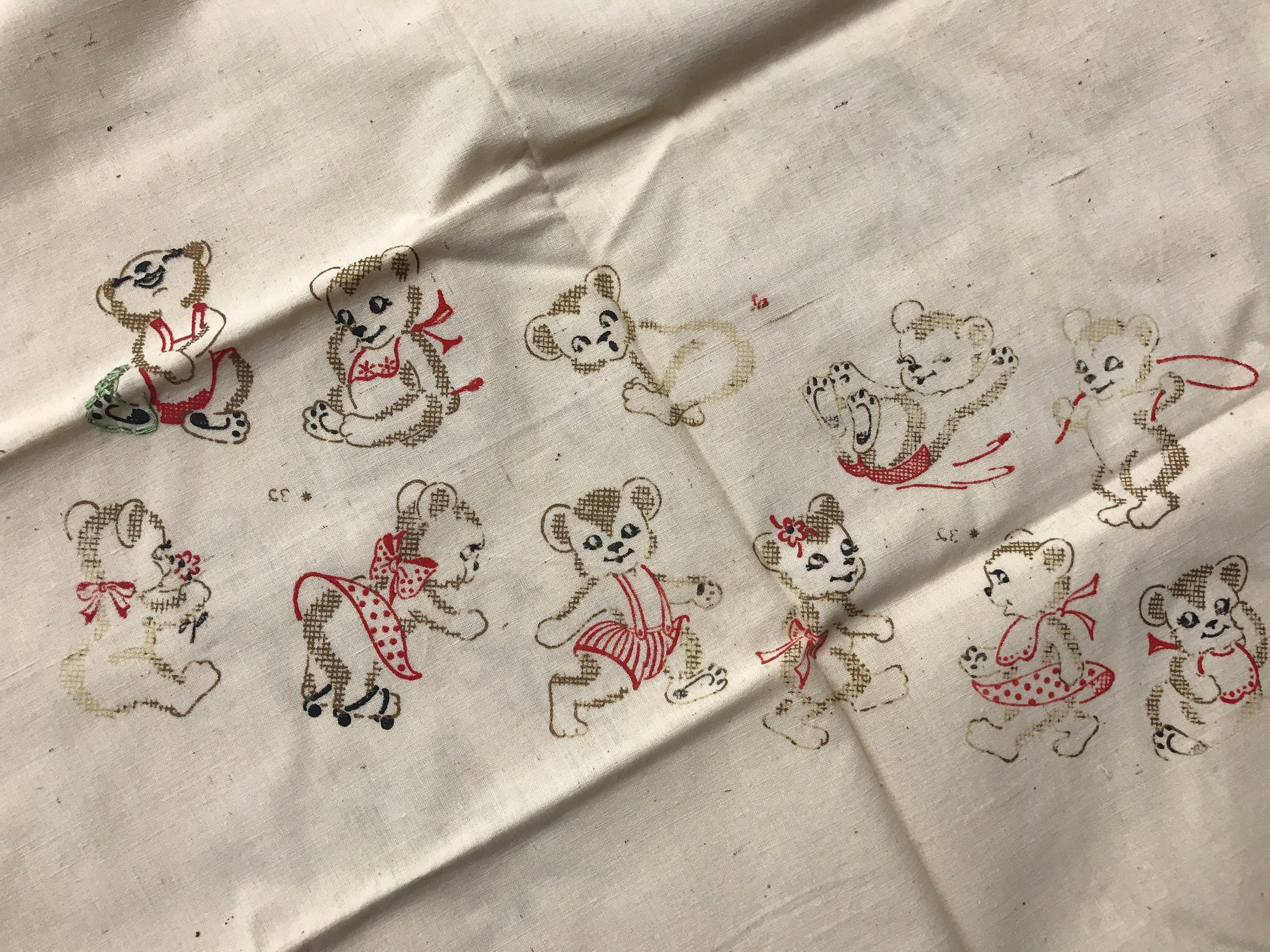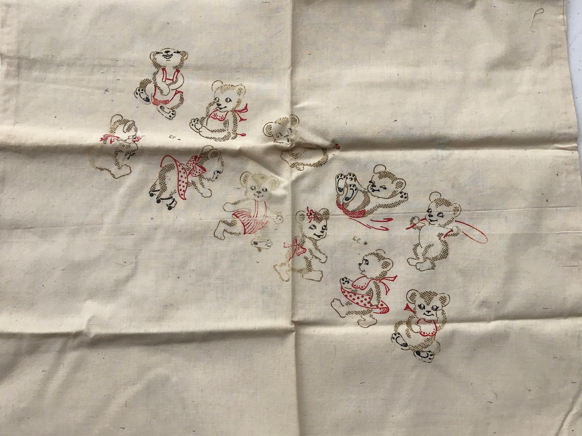 Absolutely charming vintage bear fabric - bears playing/laughing - can be finished as a pillowcase or other project
