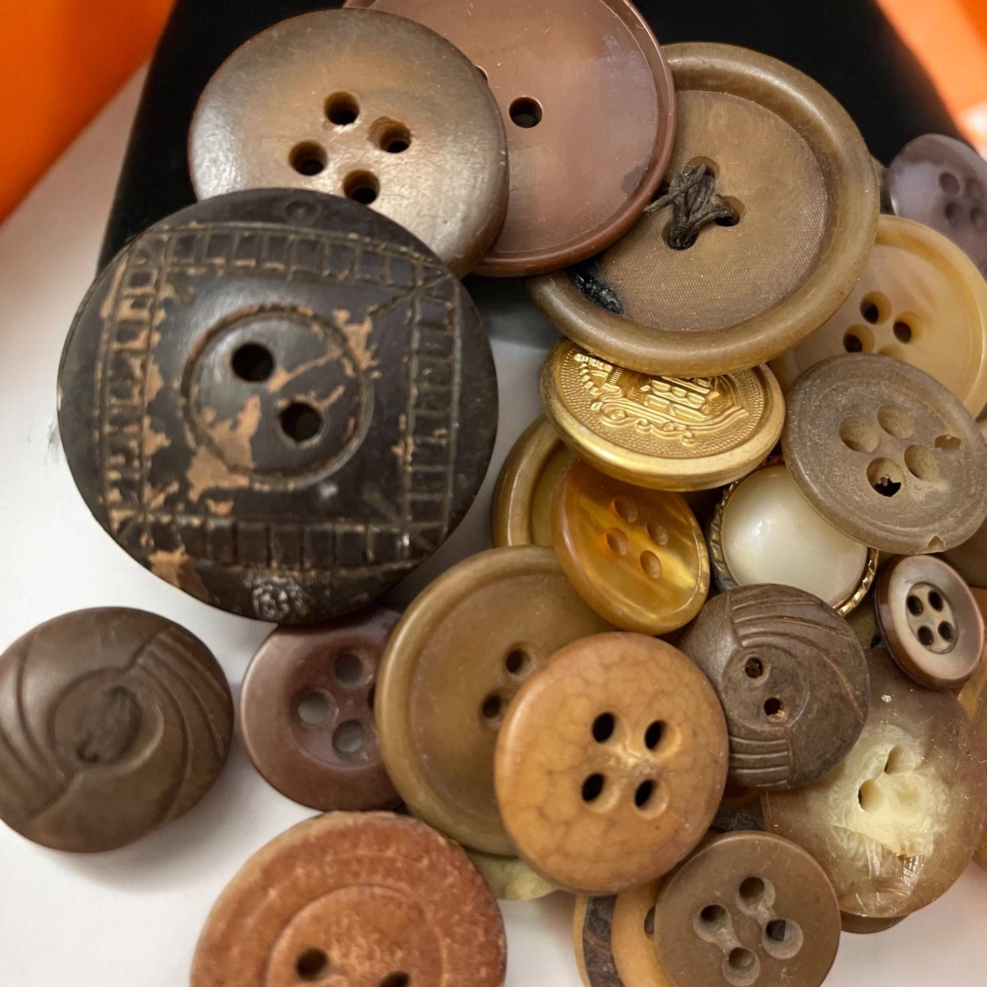 Buttons by the ounce - mystery lot of gold, brown, tan and cream vintage buttons - mixed sizes and materials - as found