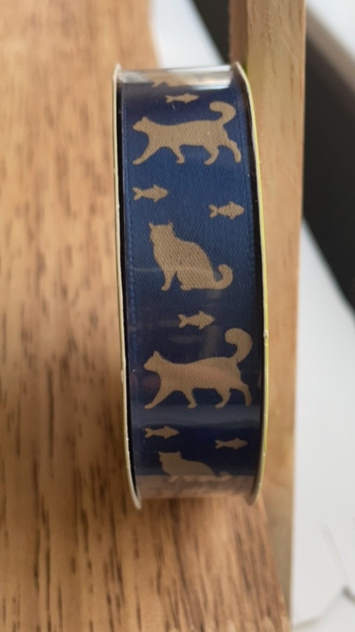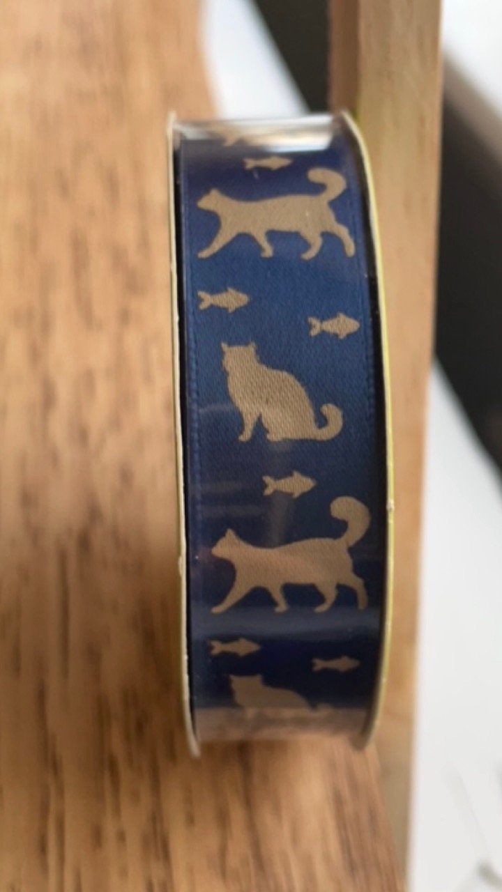 Charming cats ribbon - new, mint condition - price per yard - farmhouse ribbon, cottage style ribbon, navy blue and tan