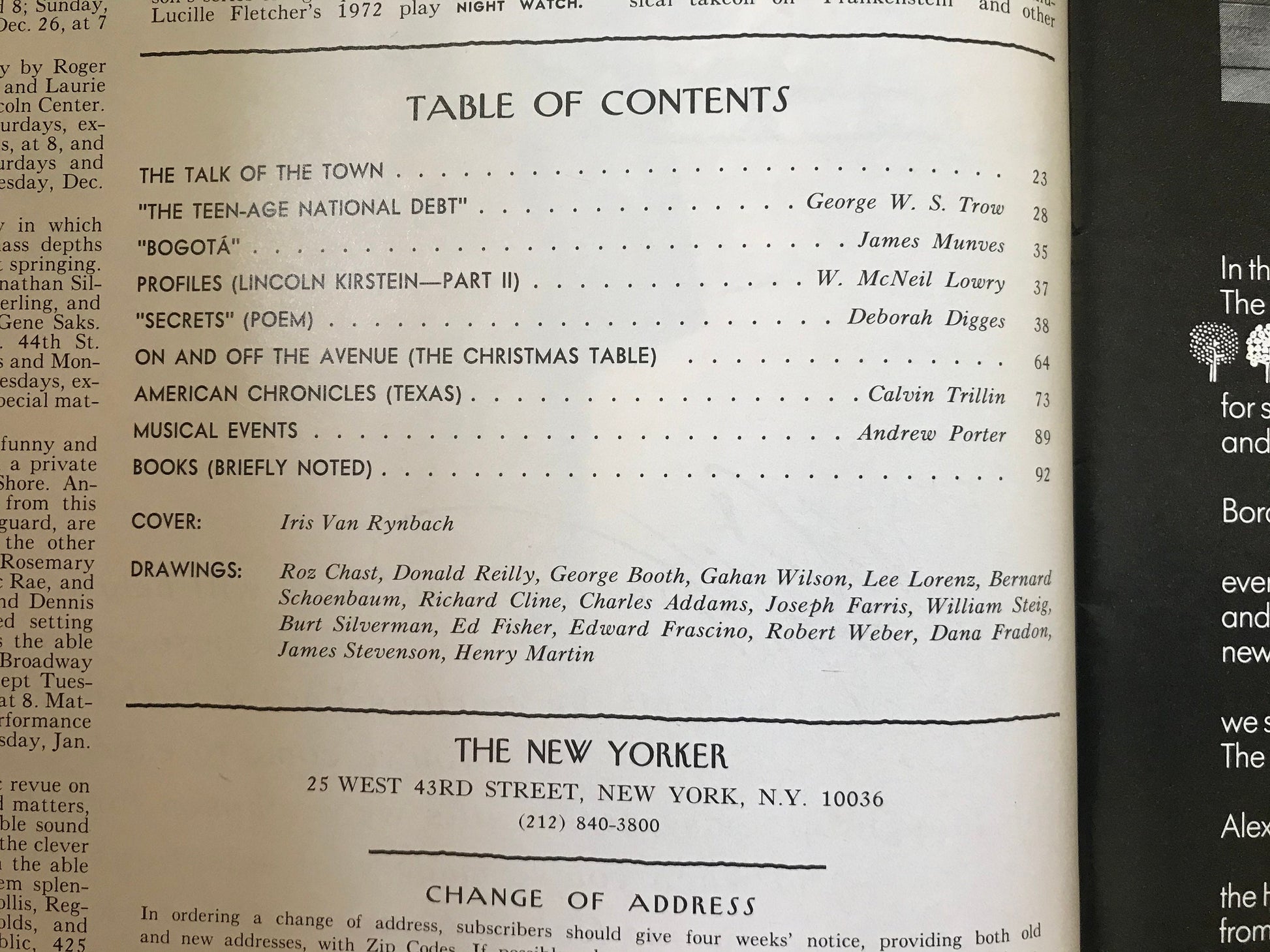 The magazine itself is filled with vintage ads, classic New Yorker cartoons and interesting articles. Read the table of contents I provided in the pics if you'd like.