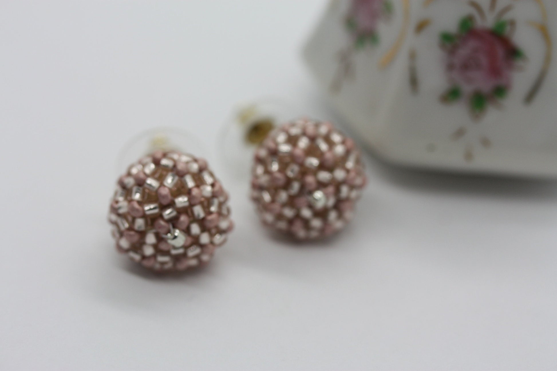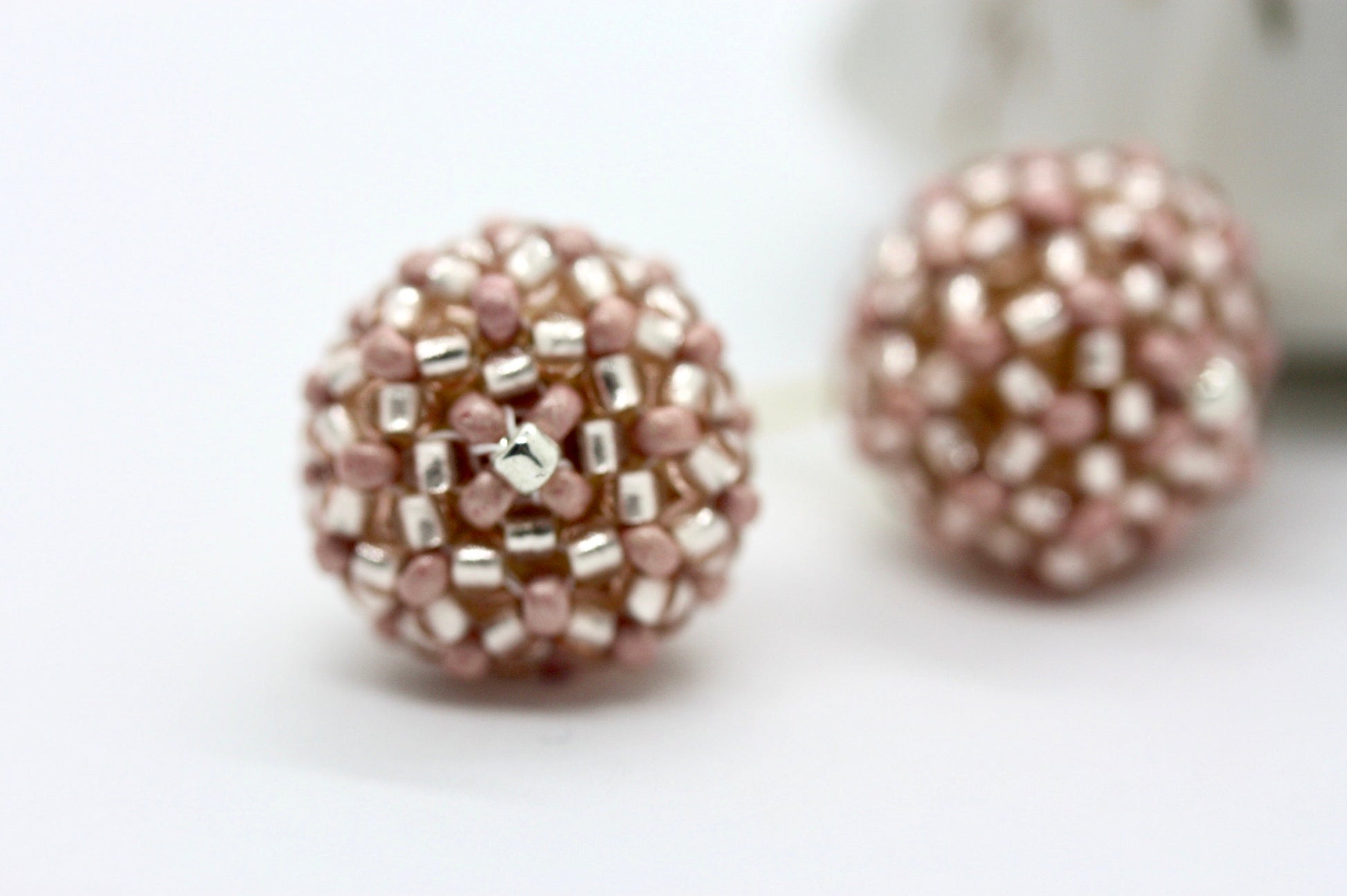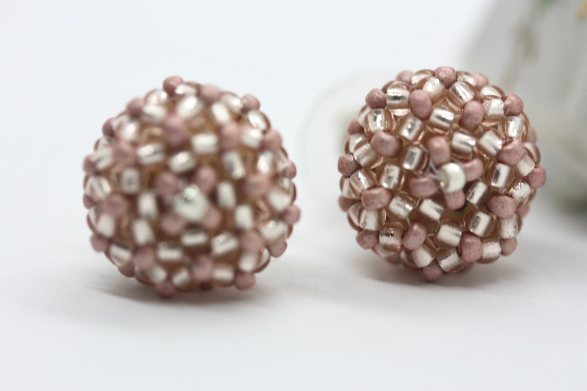 Handmade beaded bead stud earrings - approx. 3/4 of an inch - pink, wedding earrings, summer earrings