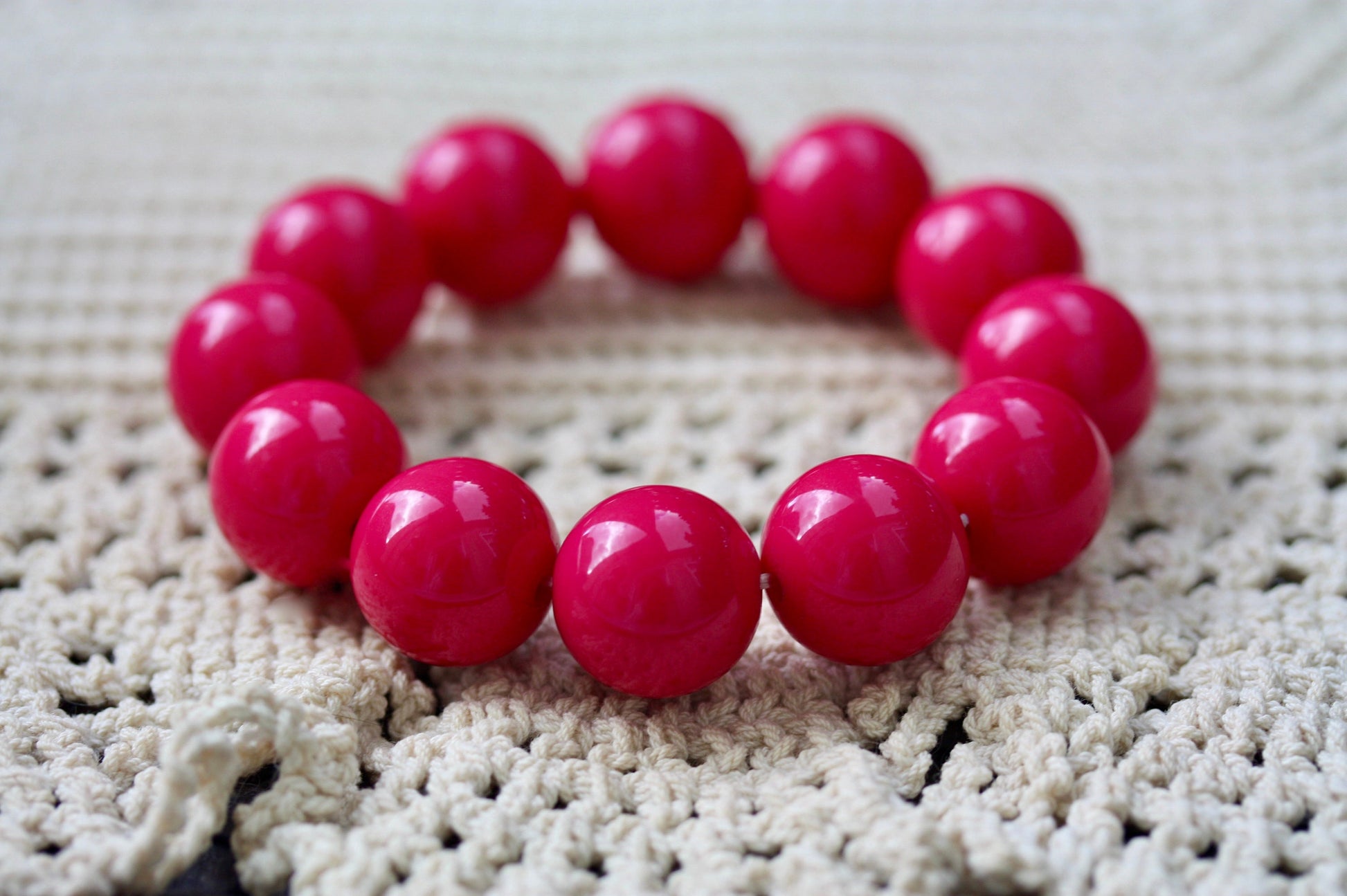HOT pink stretchy vintage beaded bracelet