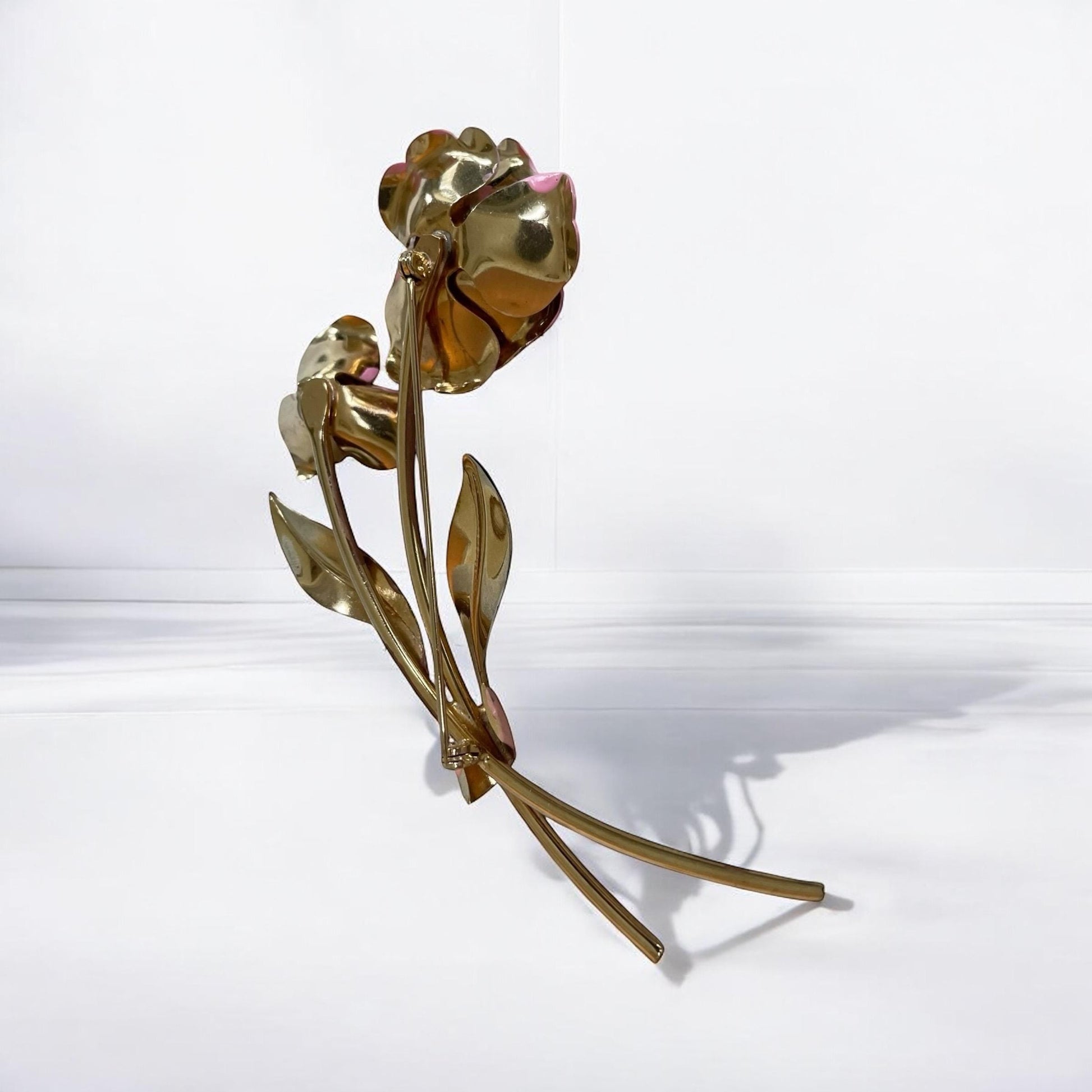 Huge 4" hand painted vintage pink flower pin