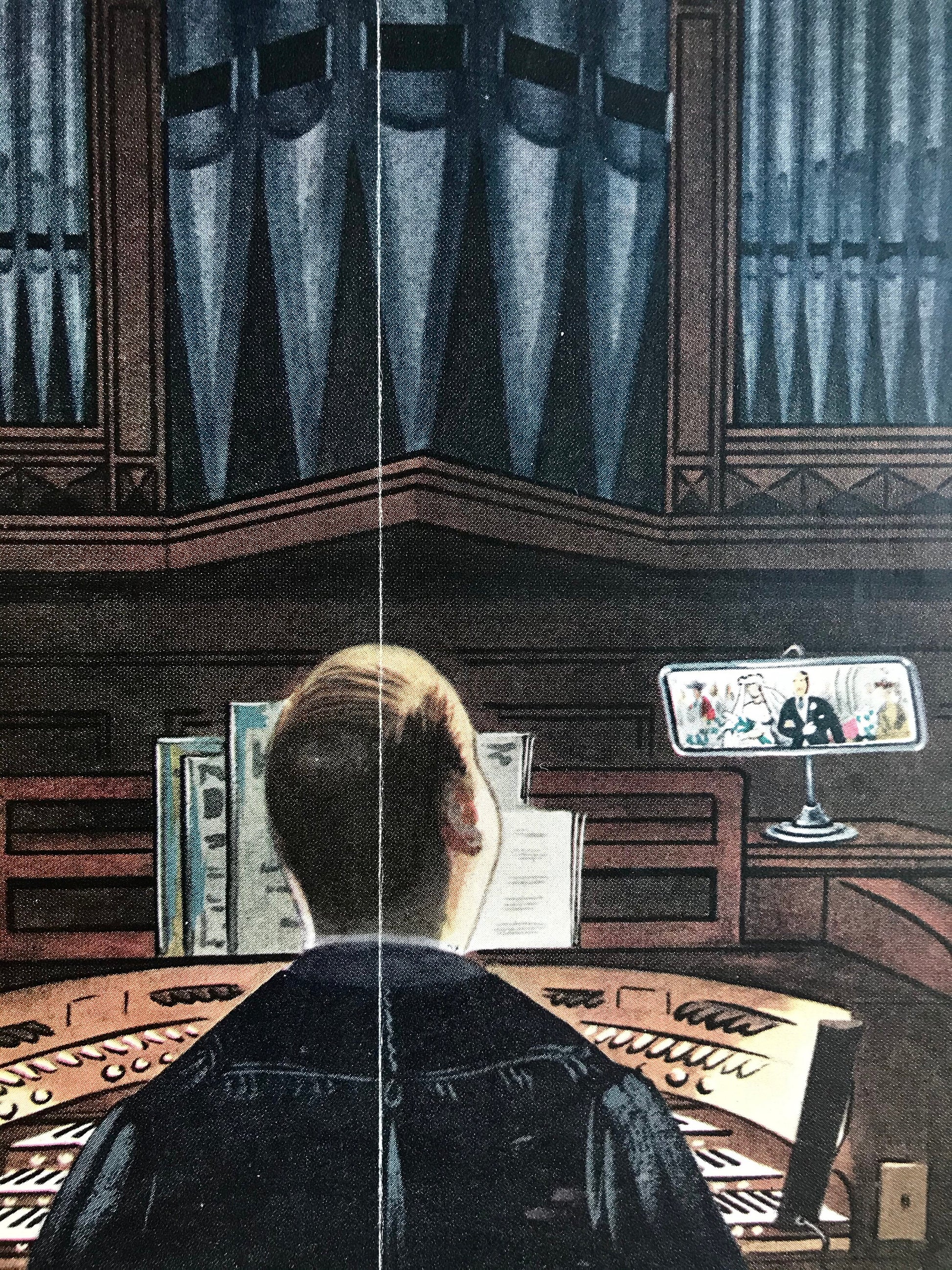 January 24, 1953 - The NEW YORKER Magazine original cover by Constantin Alajálov - church organ player - Please read description