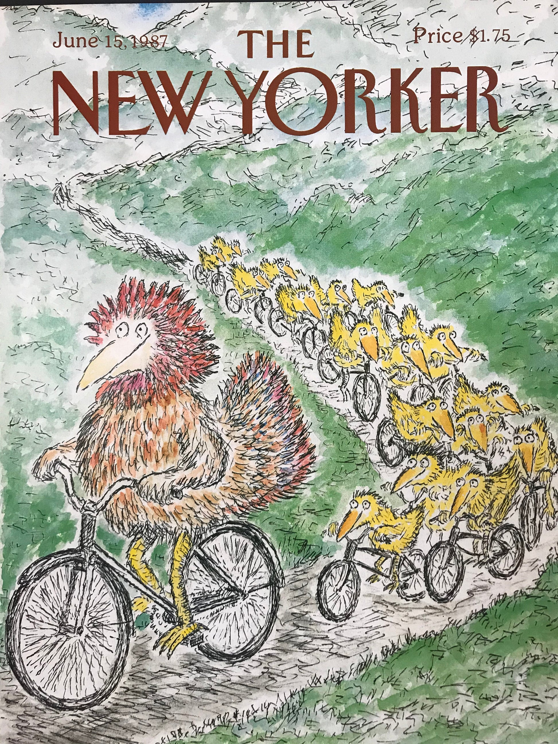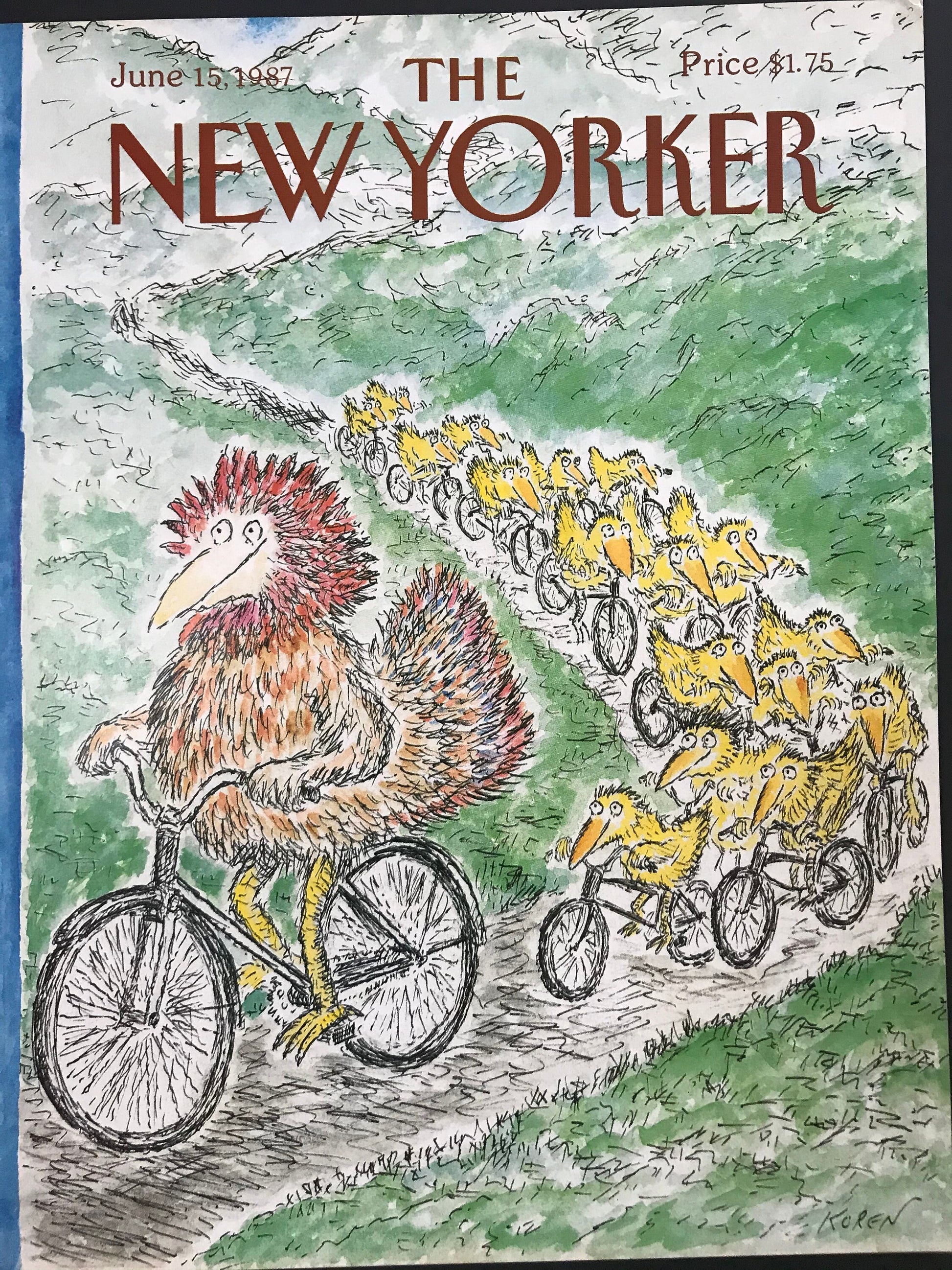 June 15, 1987 - The NEW YORKER Magazine original cover - bike riding, bicycling, by artist Ed Koren