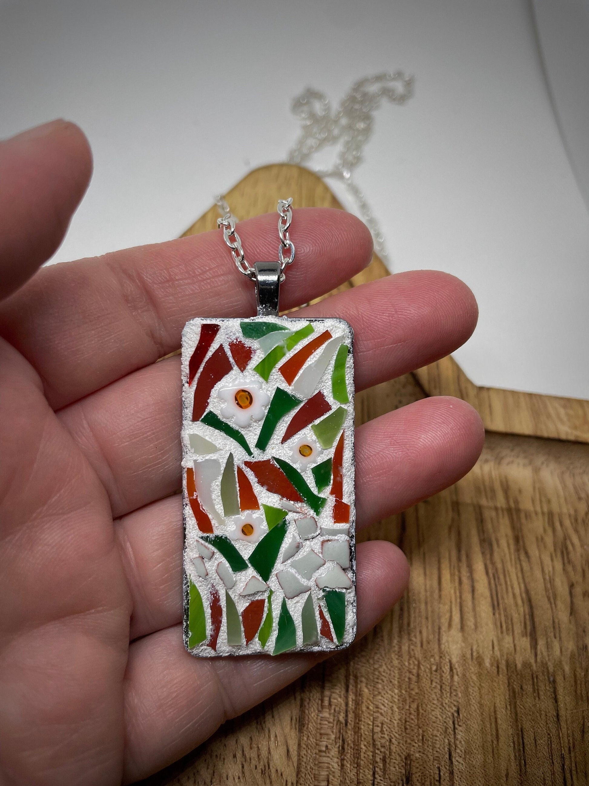 My handmade flower garden - one-of-a-kind micro mosaic necklace with handcut tile and glass