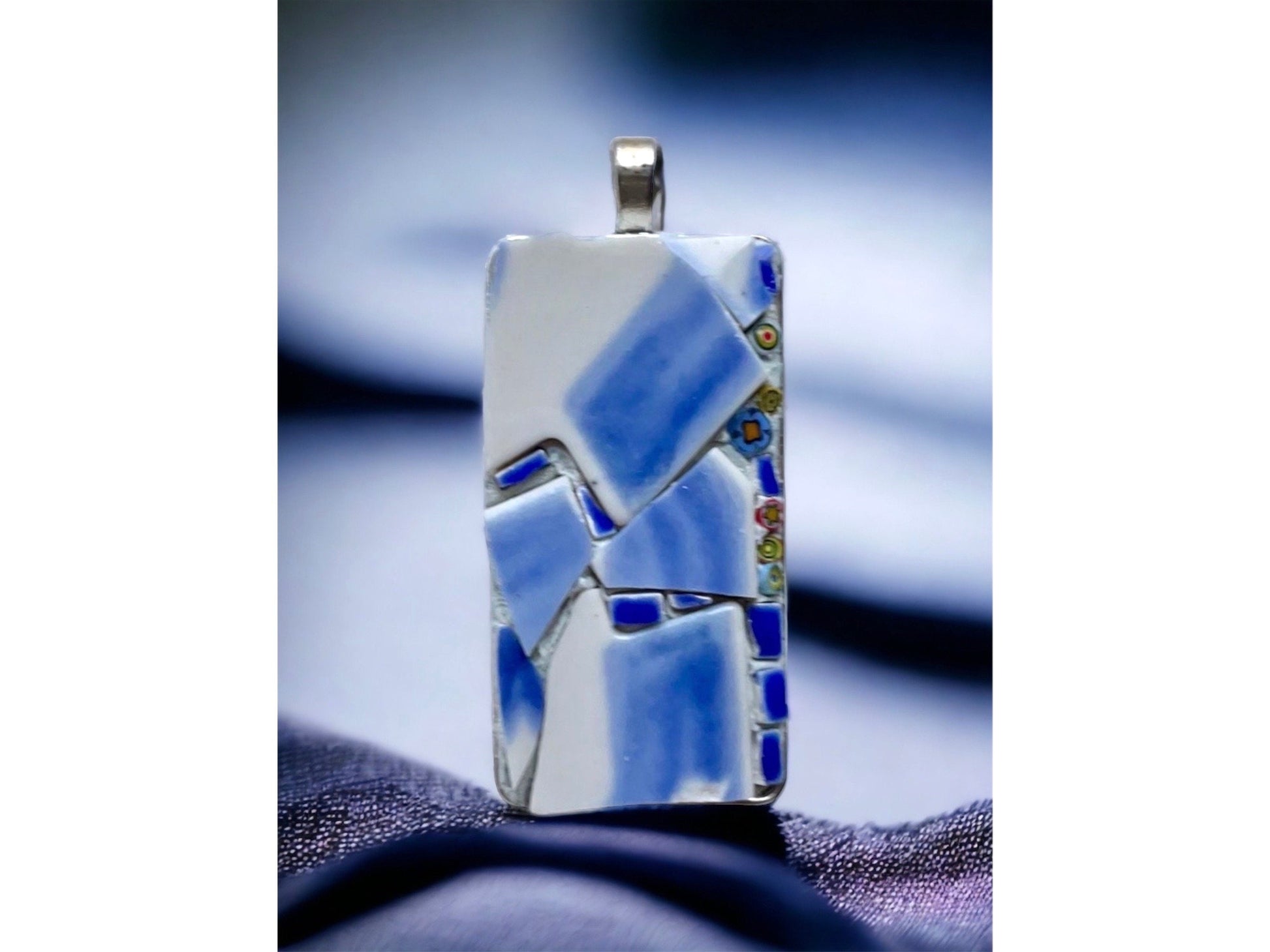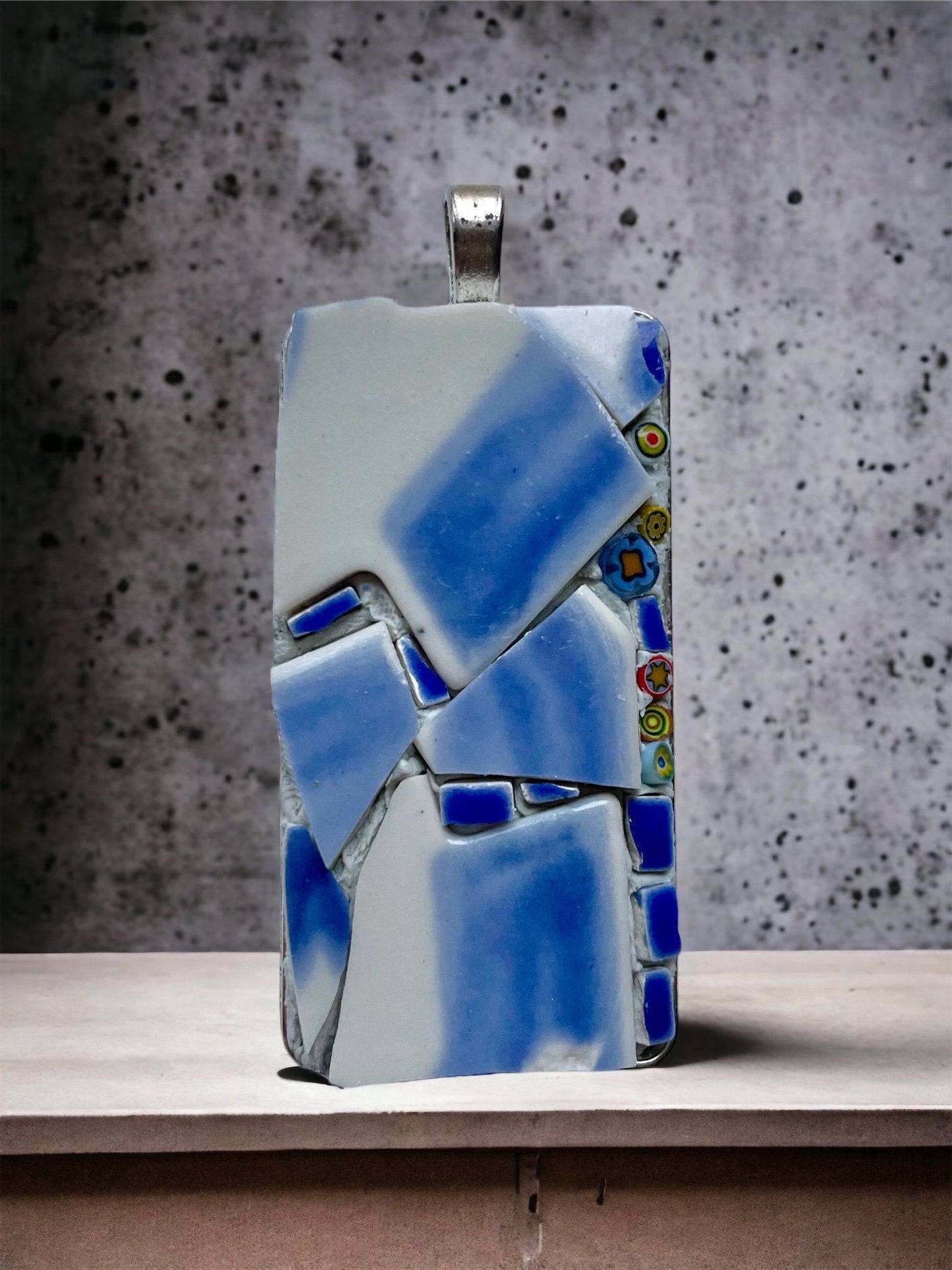 My handmade rectangular mosaic necklace - tile mosaic made with tiny millefiori glass