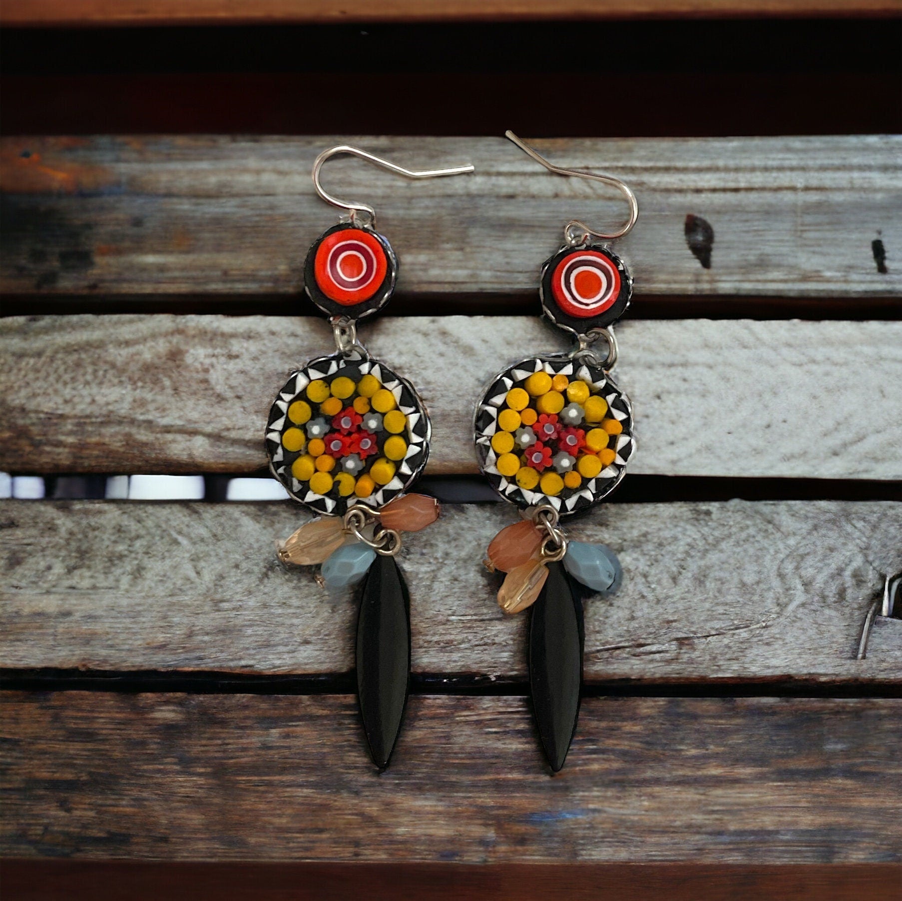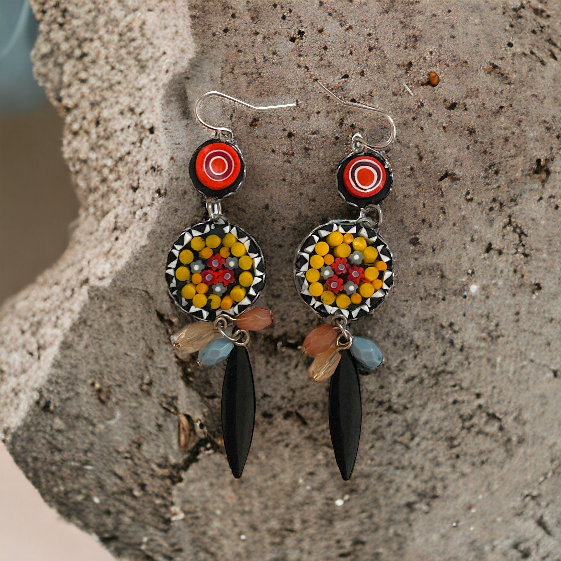 My own handmade Italian style hand cut micro mosaic millefiori glass dangle earrings