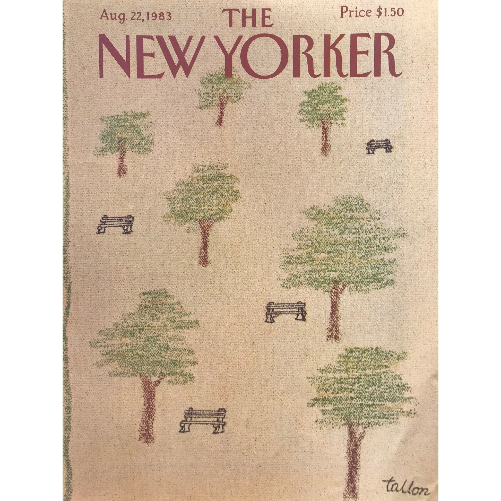 NEW YORKER Magazine cover - August 22, 1983 - trees and park benches