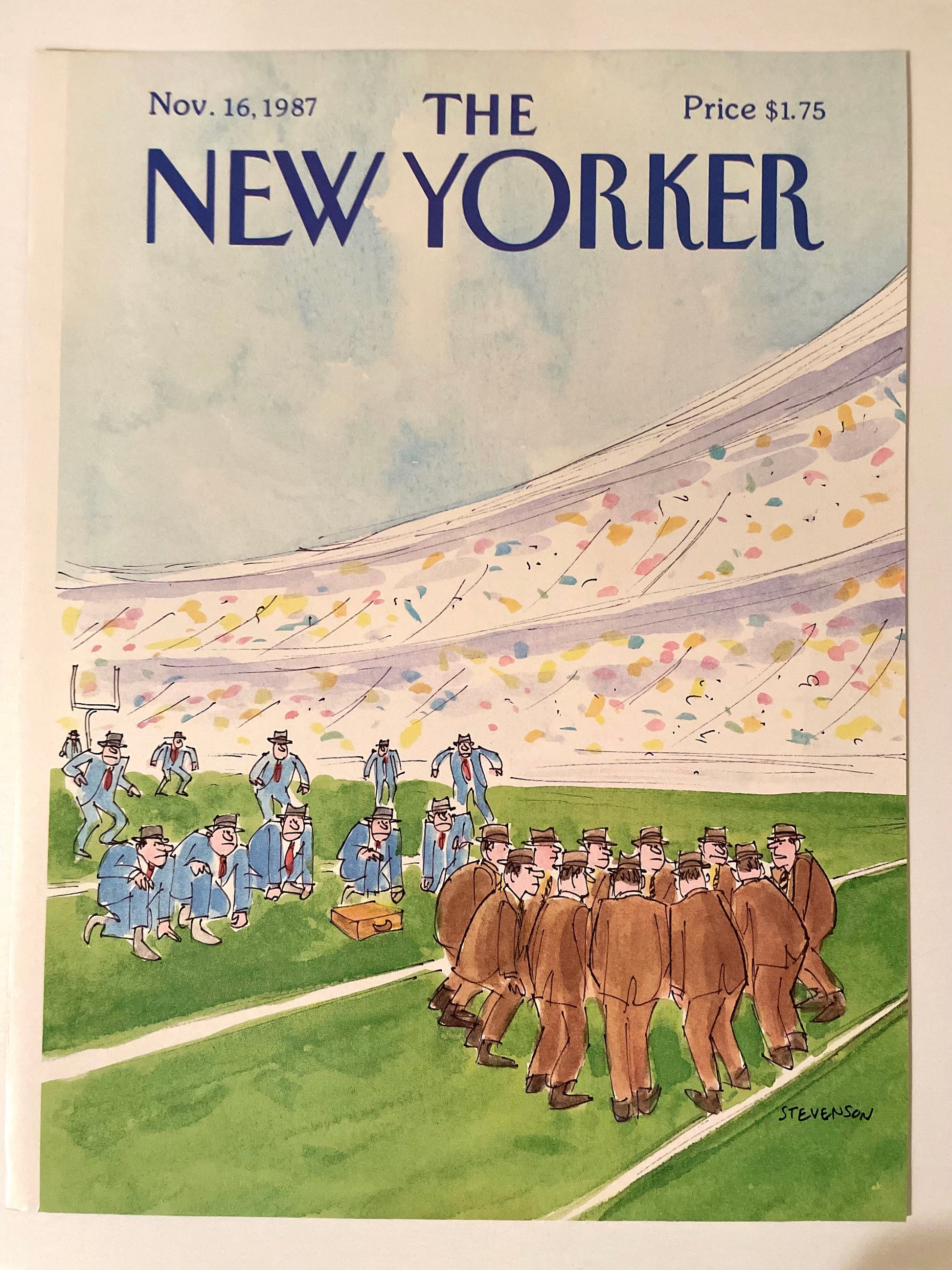 November 16, 1987 - The NEW YORKER Magazine original cover - Business men playing football by James Stevenson