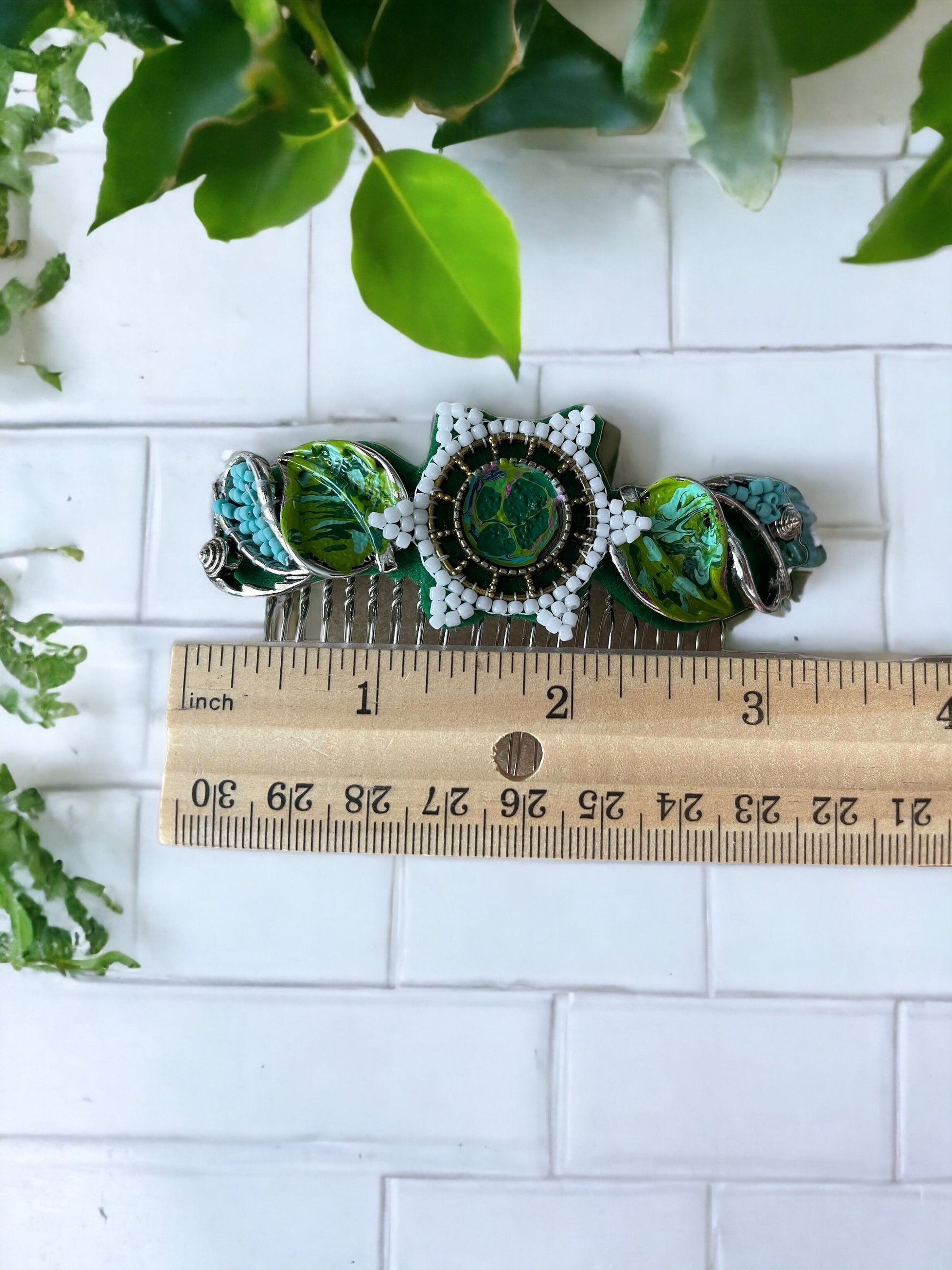 One-of-a-kind, hand made, nature inspired, mixed media metal hair comb