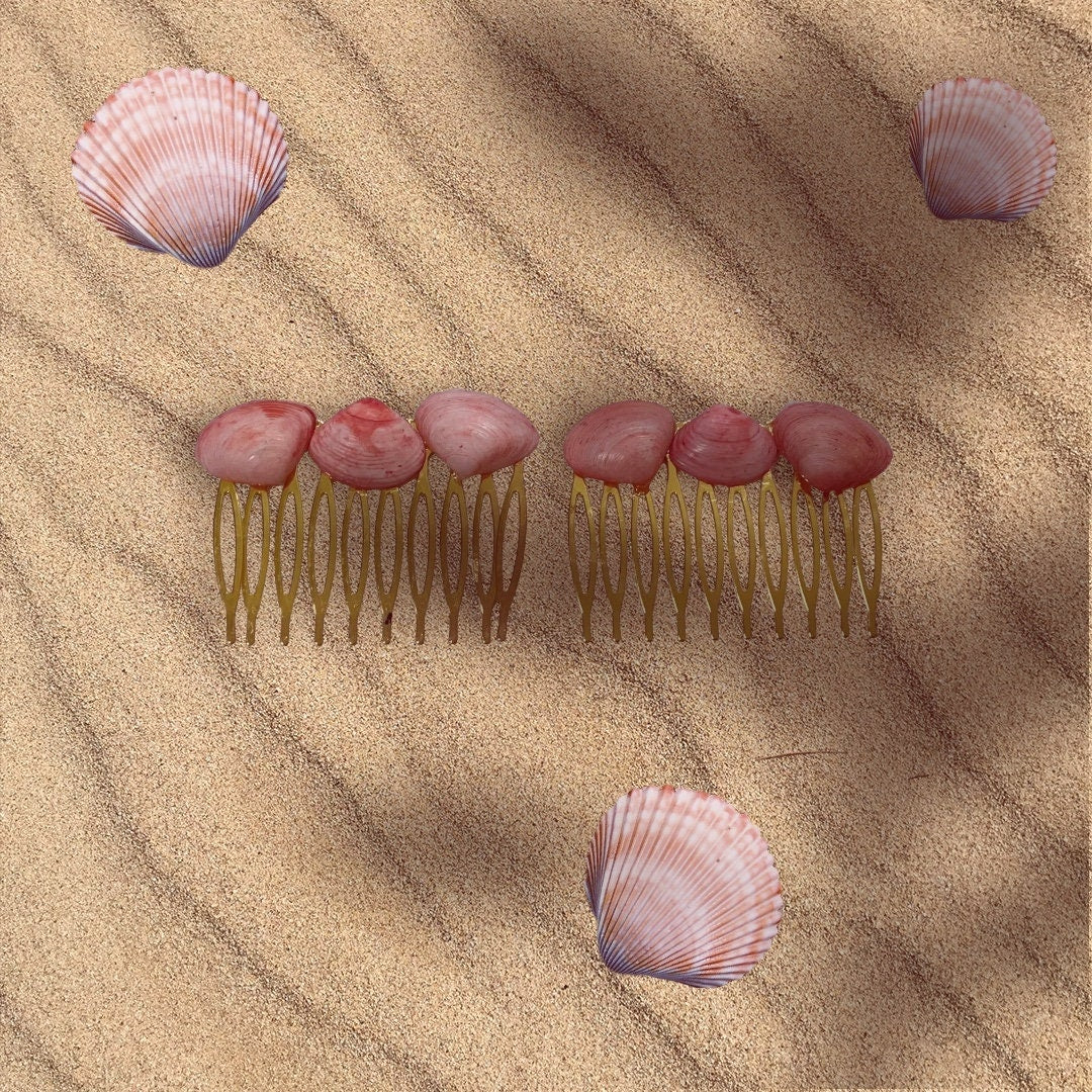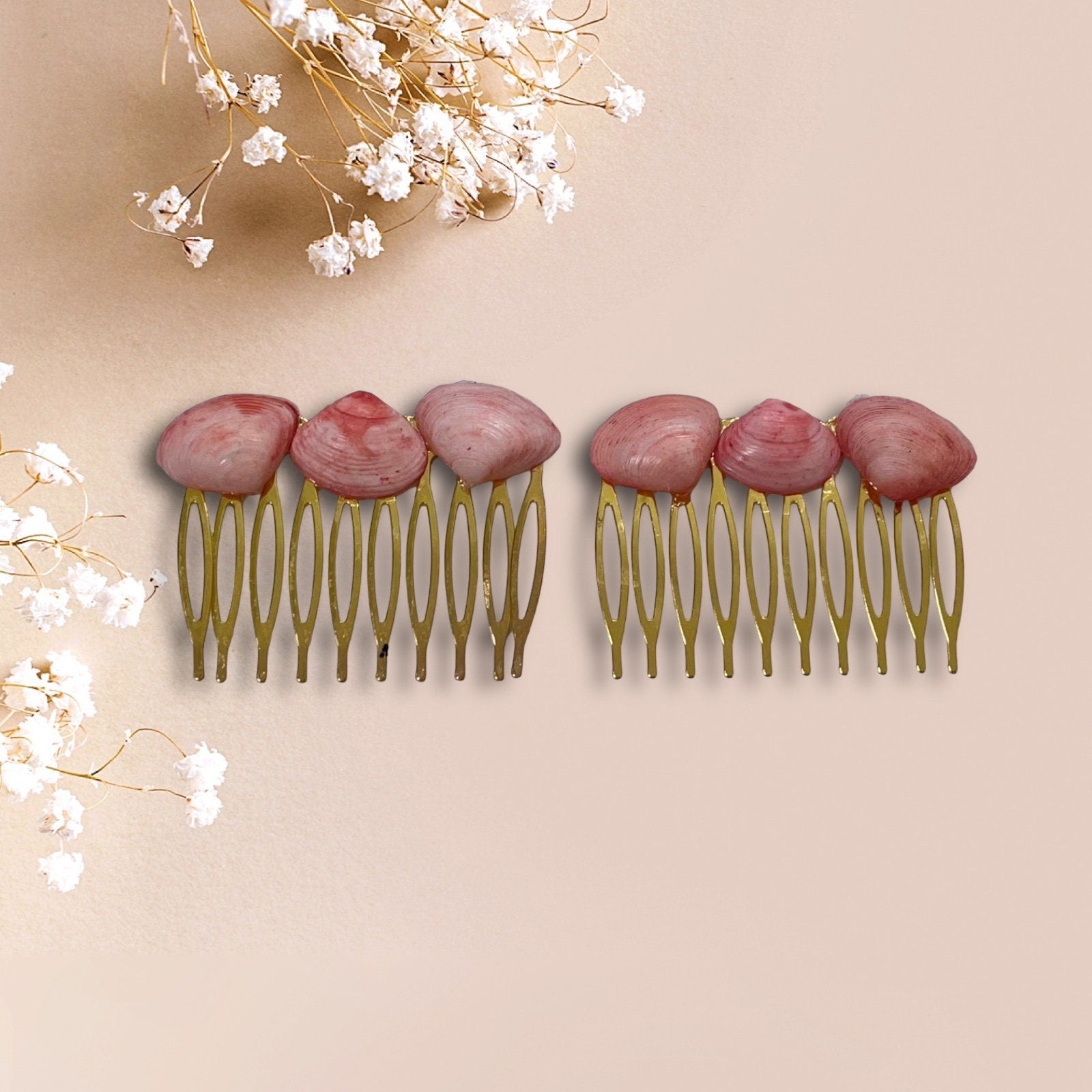 This is for two hair combs (1 pair). The comb is metal as shown. They are made with peach seashells.