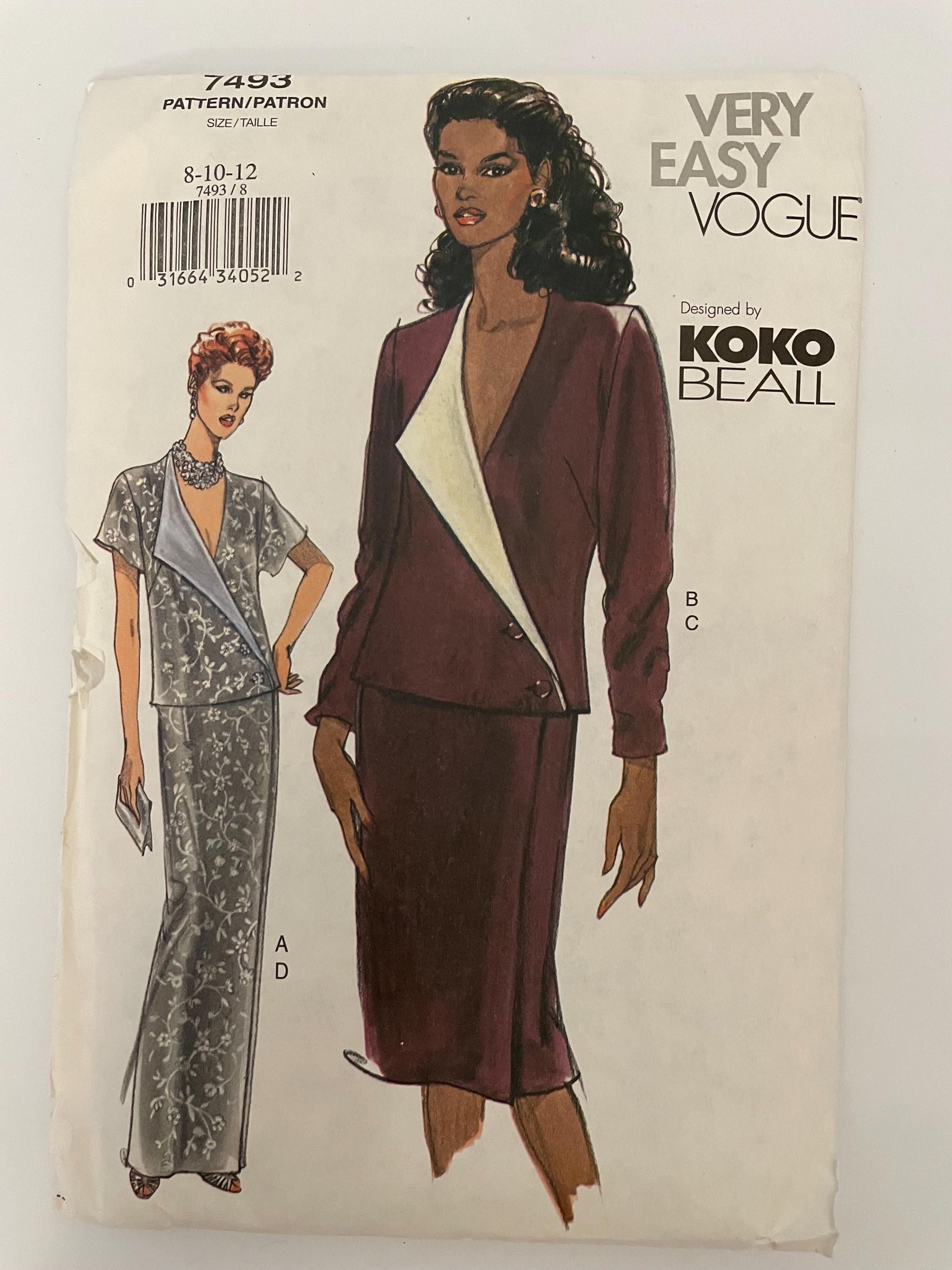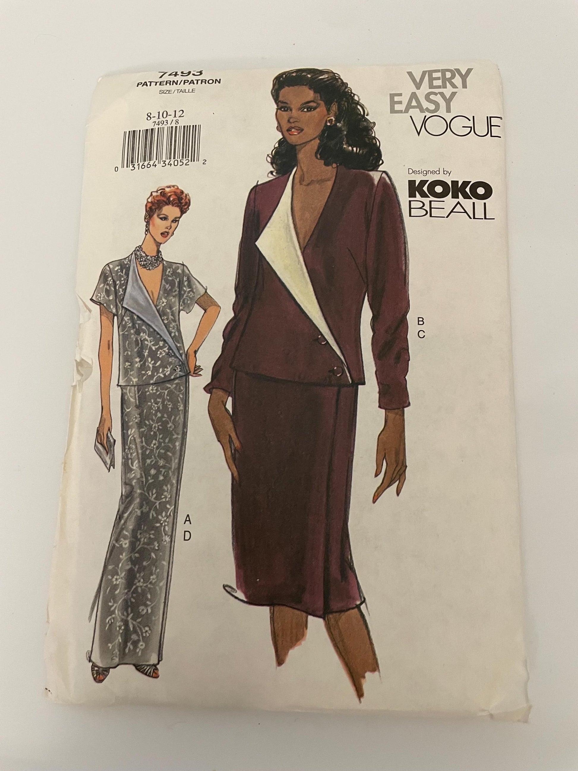 RARE UNCUT Sewing Pattern - Very Easy Vogue Koko Beall - Womens Suit - Top and Semi Fitted Skirt - Sizes 8, 10, 12