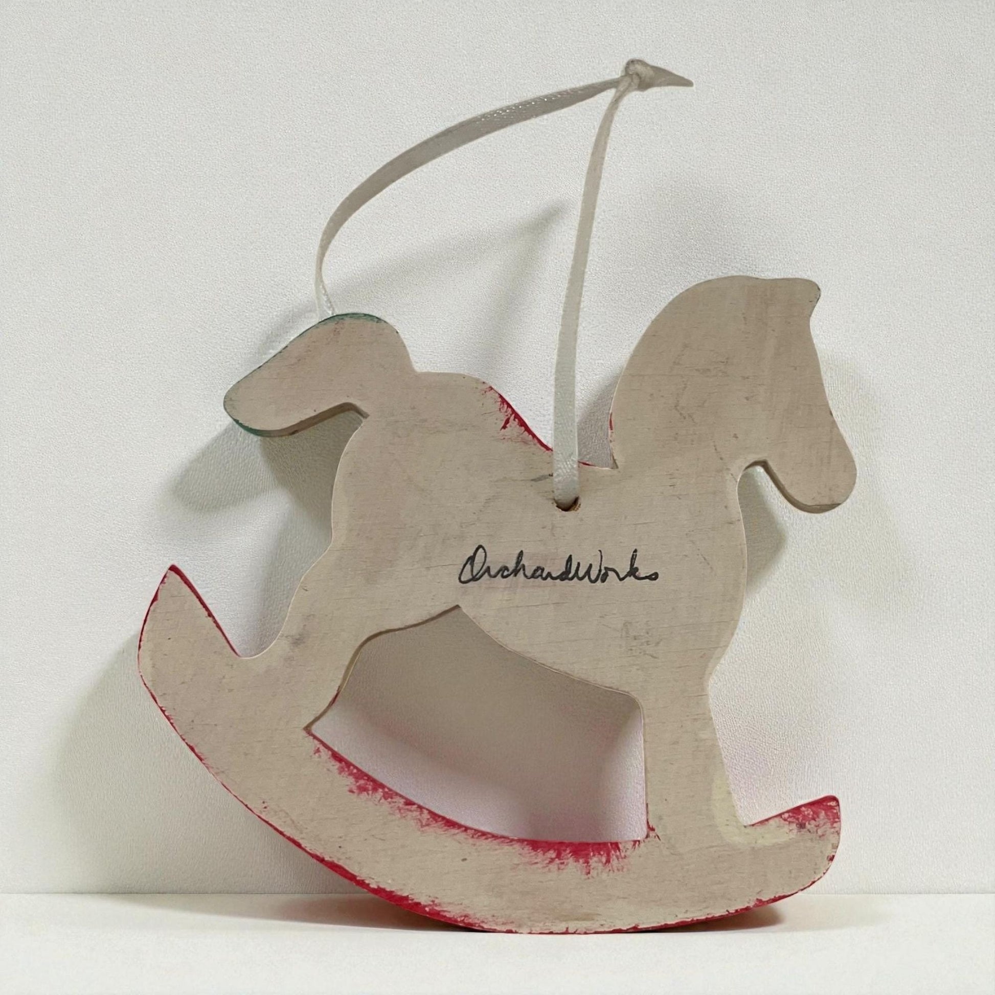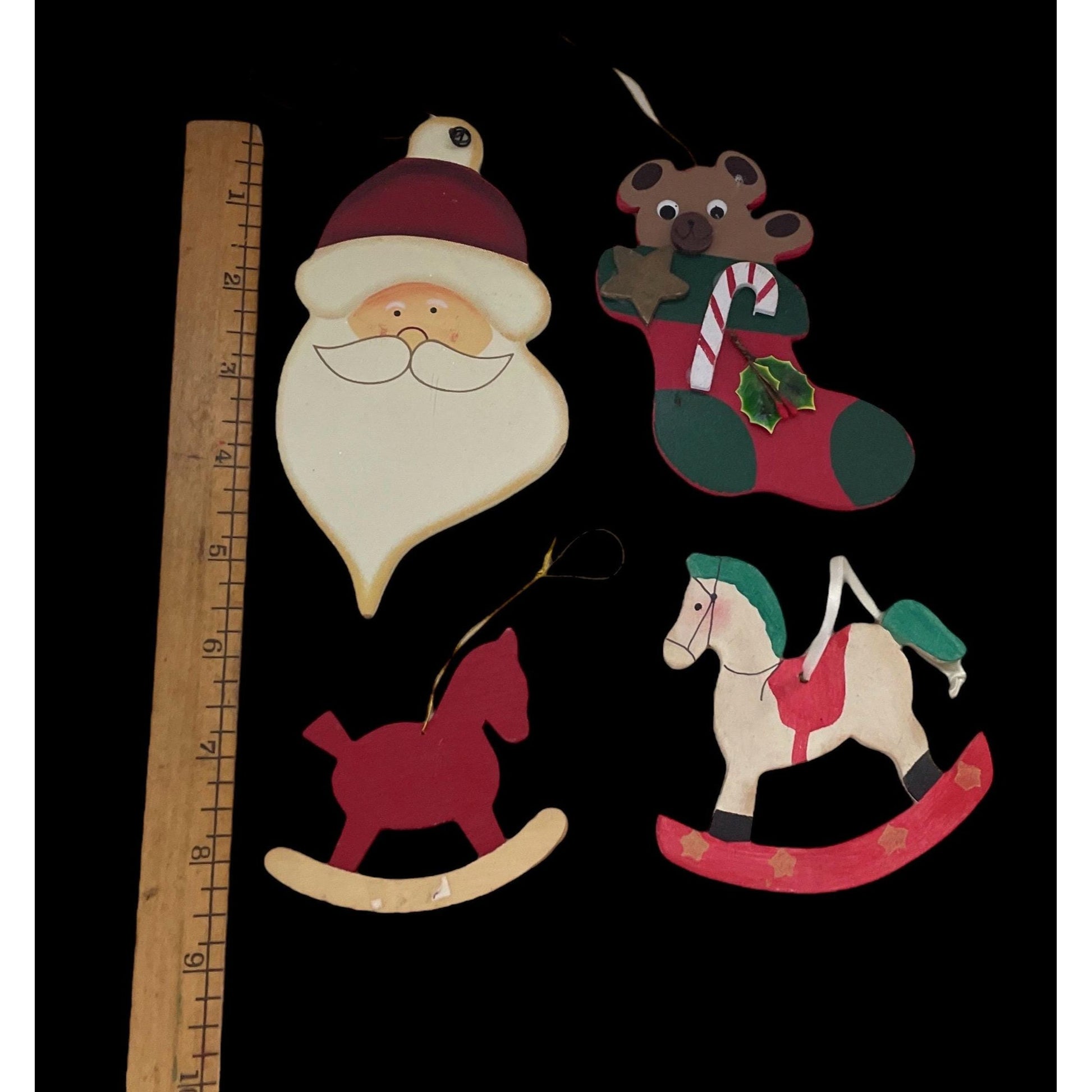 Rustic Wooden Christmas Ornament Set of 4 – Santa Face, Teddy Bear Stocking & Rocking Horses – Holiday Tree Decorations