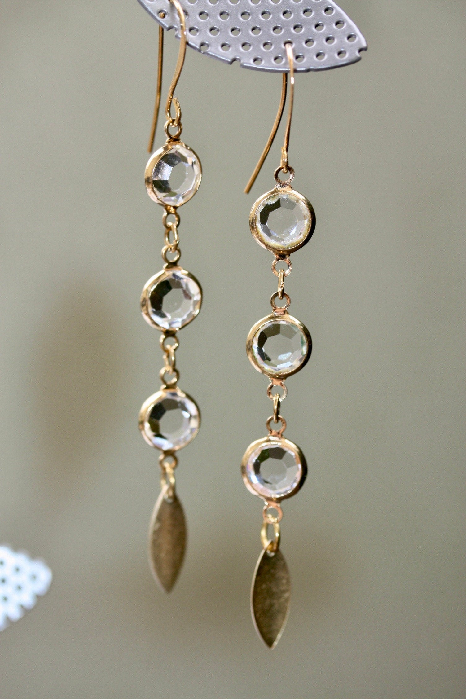 These earrings feature beautiful crystal components that came from a vintage necklace. I can adjust the earrings to be longer or shorter based upon your wishes. Just message me if you'd like the length to be adjusted. Measurements are shown in the pics.