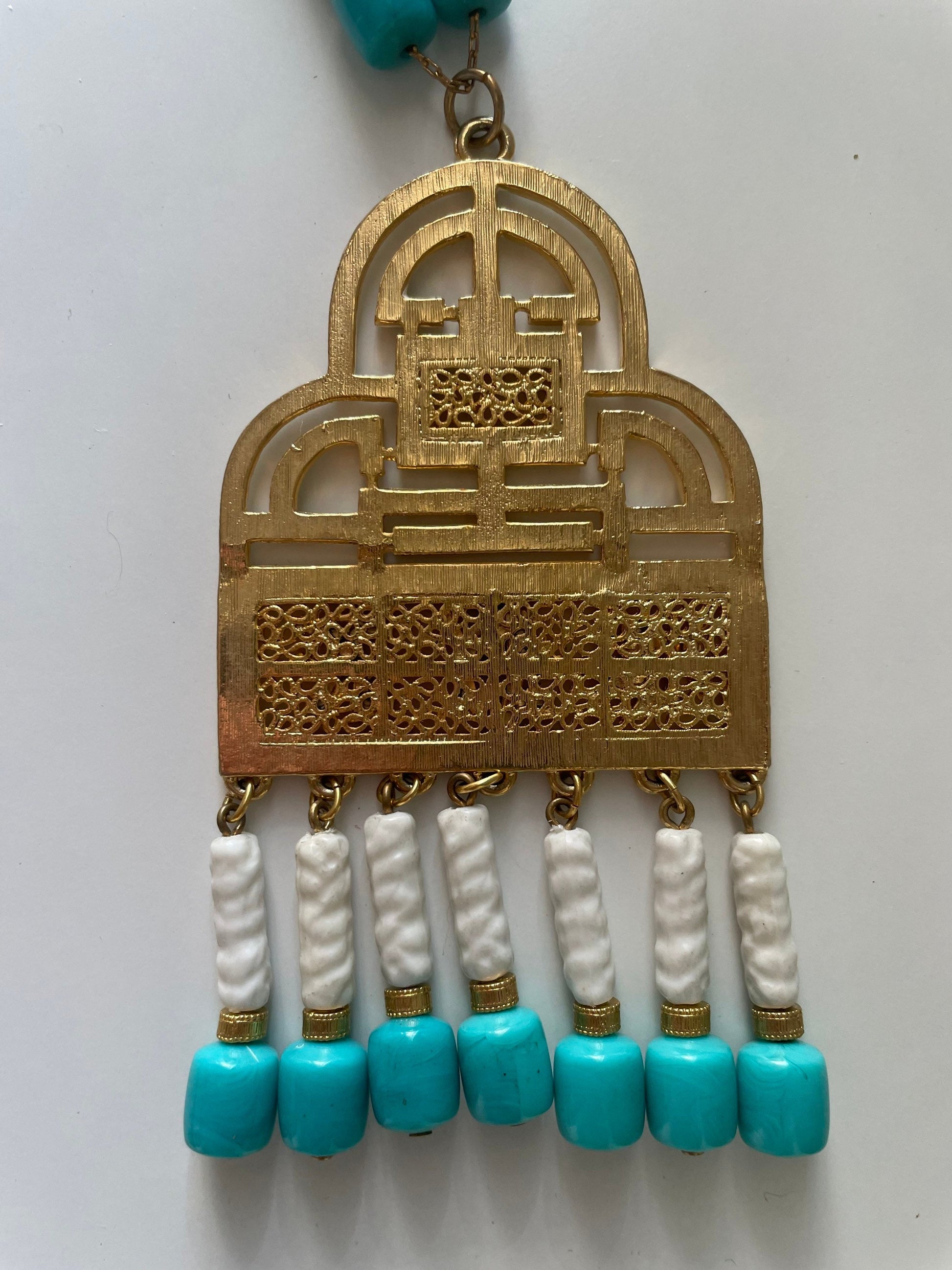 This beautiful necklace is not signed so I'm not sure of the maker or age. I also don't know what it says but it looks like Chinese writing. It's a very unique pretty piece in good condition as shown.