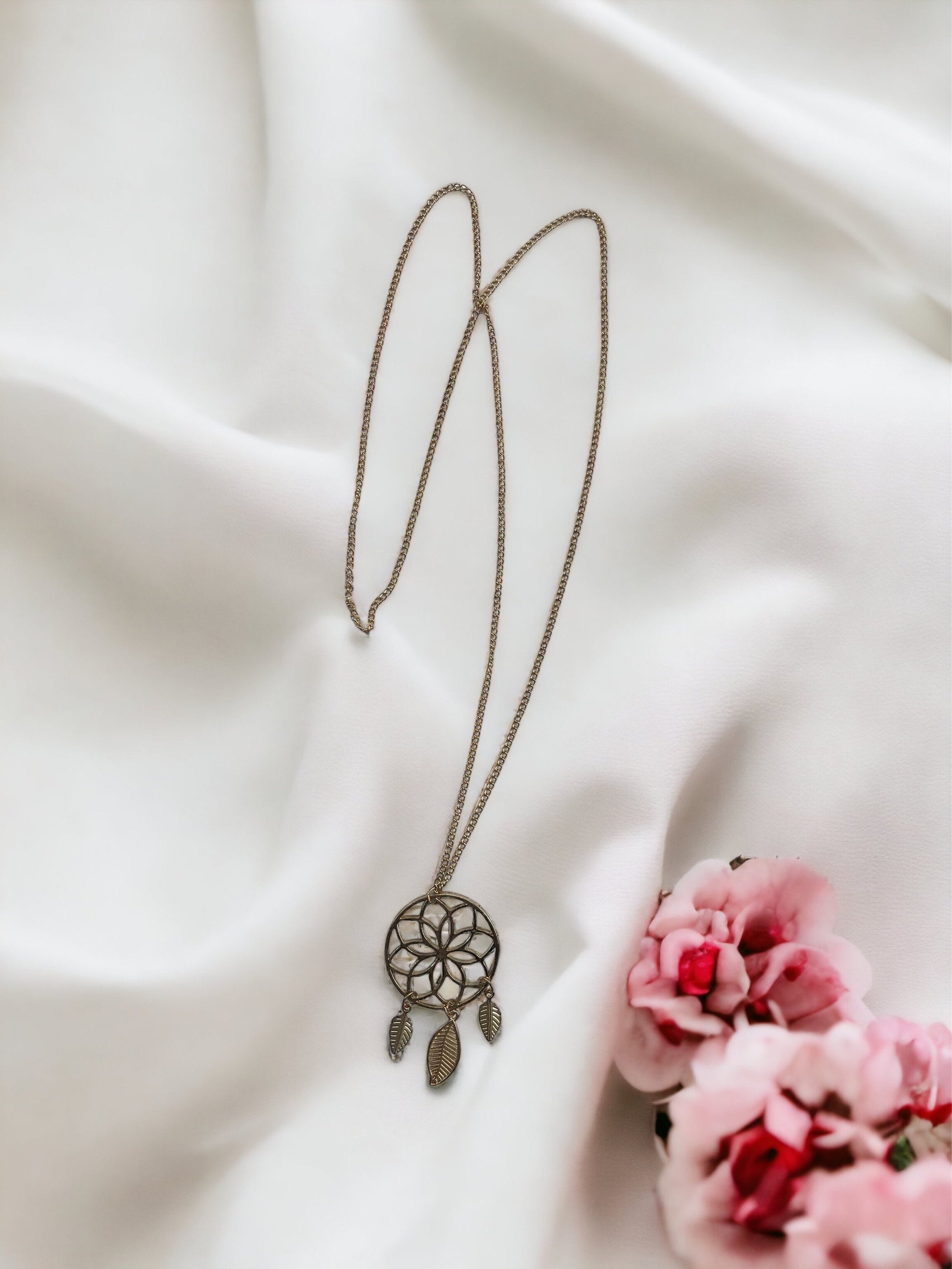 Stunning vintage dreamcatcher necklace with feather dangles