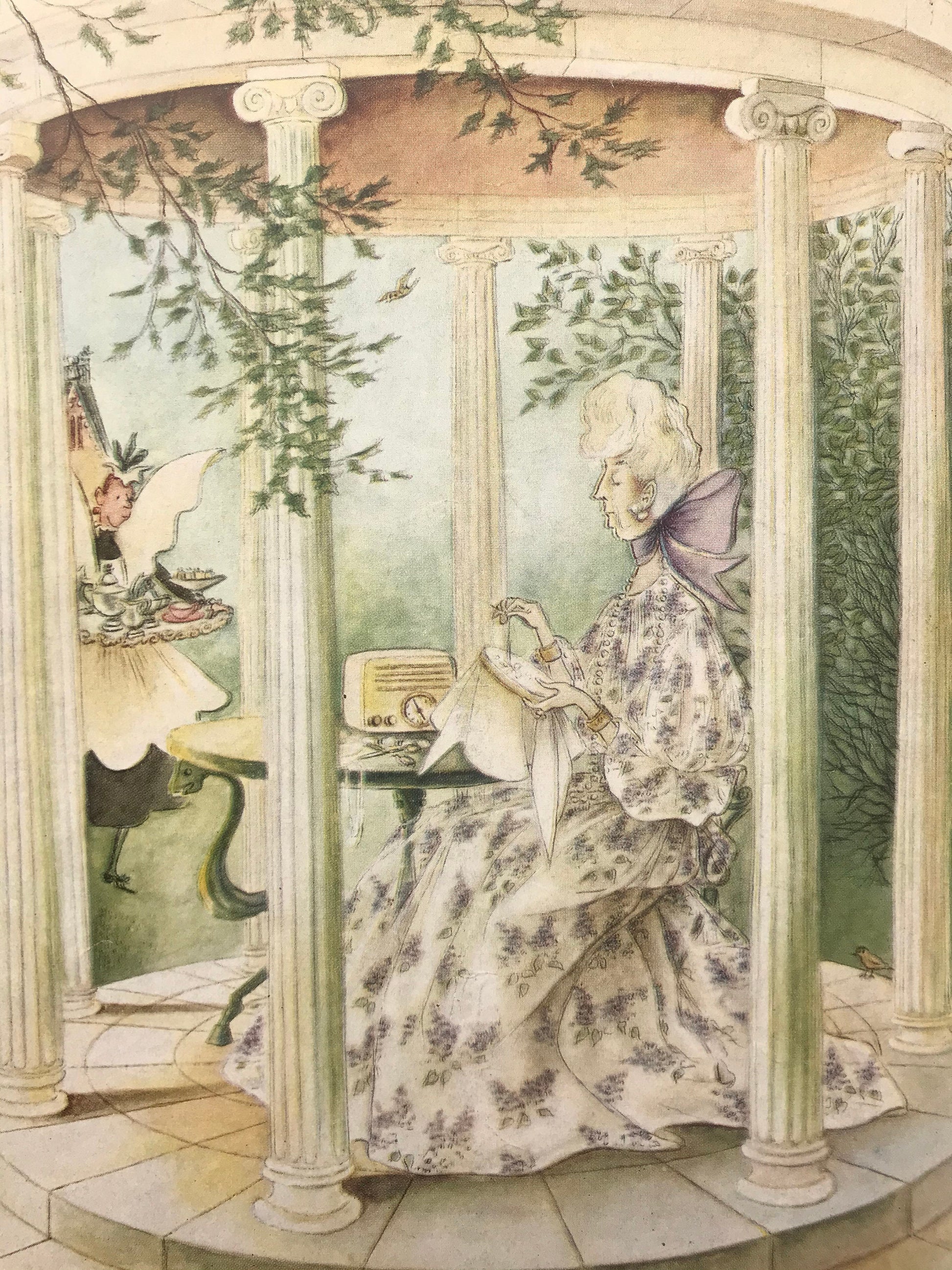 This cover features a lady sitting on a terrace.