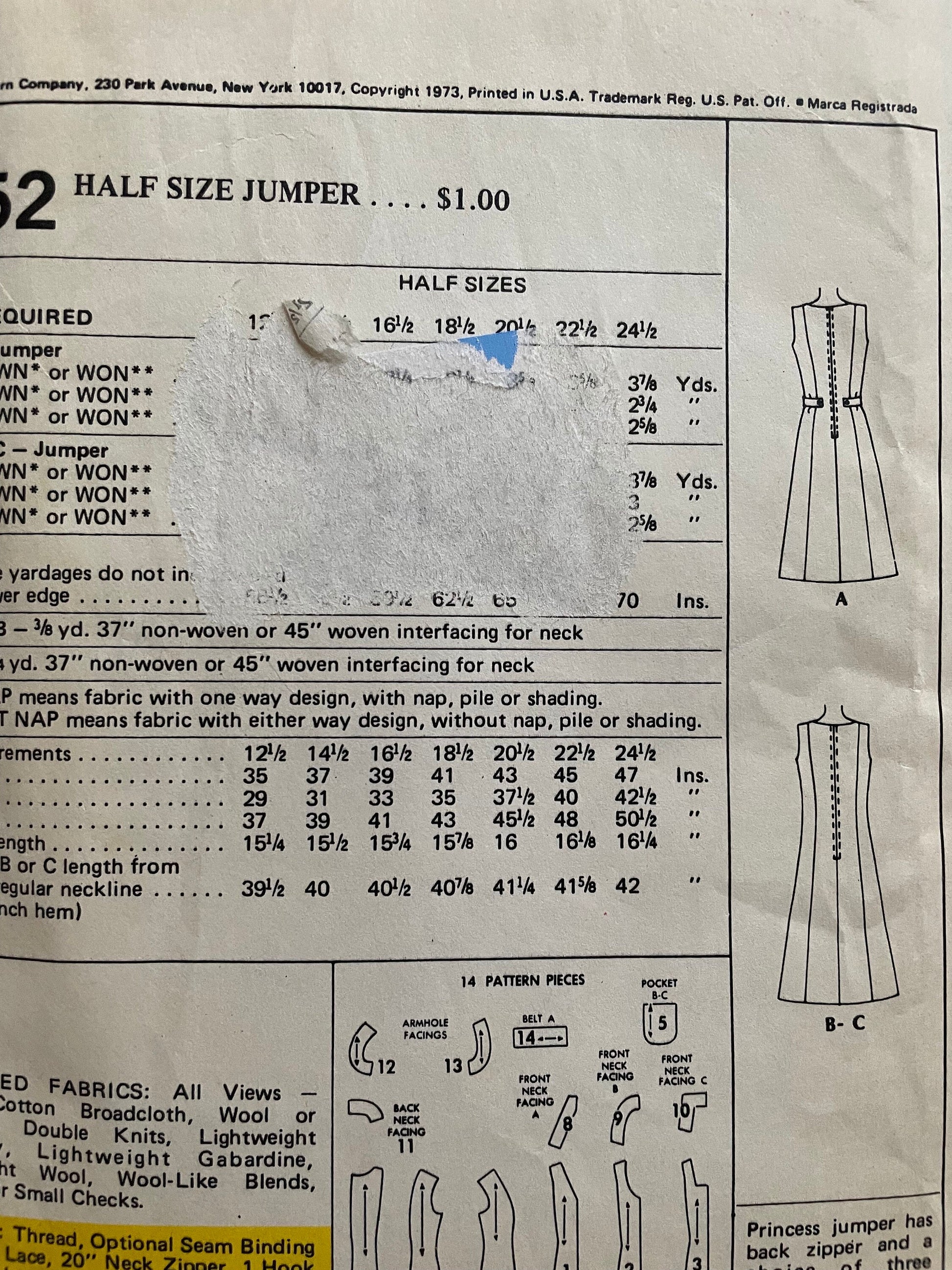 UNCUT Sewing Pattern - 1973 McCall's 3652 - Jumpers / dresses - sizes 12 - 24