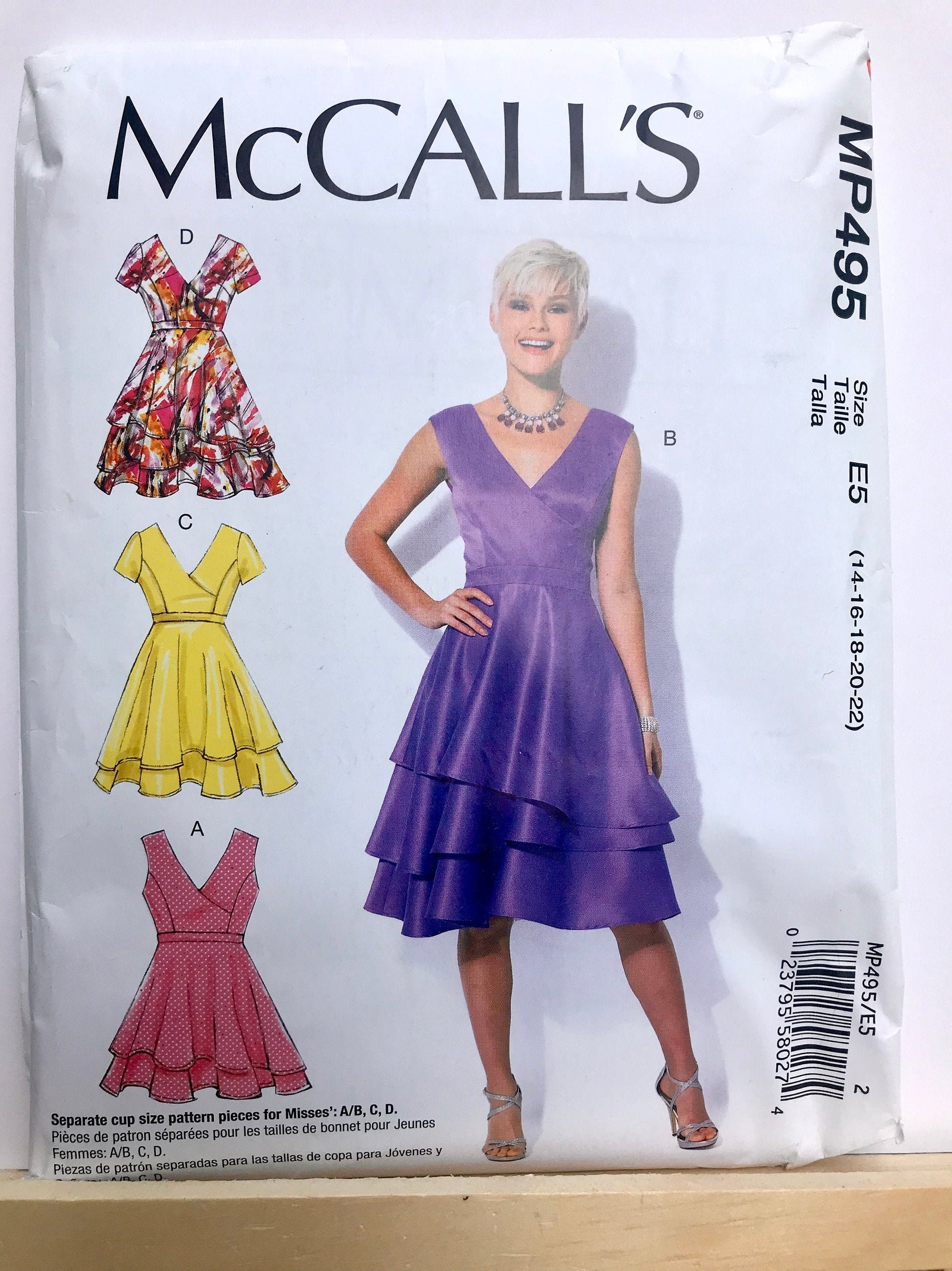 UNCUT Sewing Pattern - McCall's Dress Pattern MP495 - Sizes 14-22, Asymmetrical Tiered Dress in 4 Variations - Fit and Flare Surplice Bodice