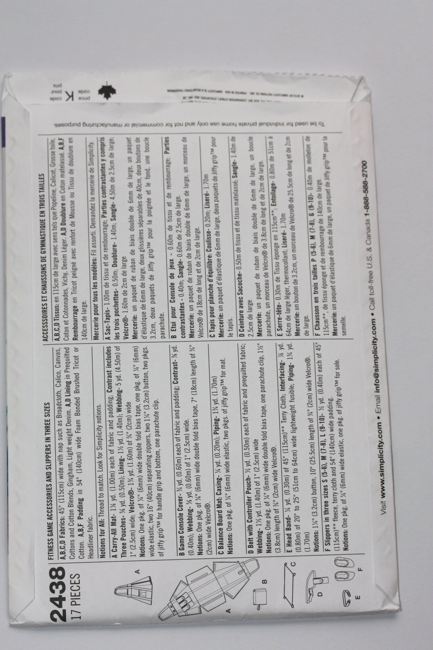 UNCUT Sewing Pattern - Simplicity 2438 Fitness Game Accessories and Slippers Carry-All, Balance Board Mat, Belt with Controller Pouch / more