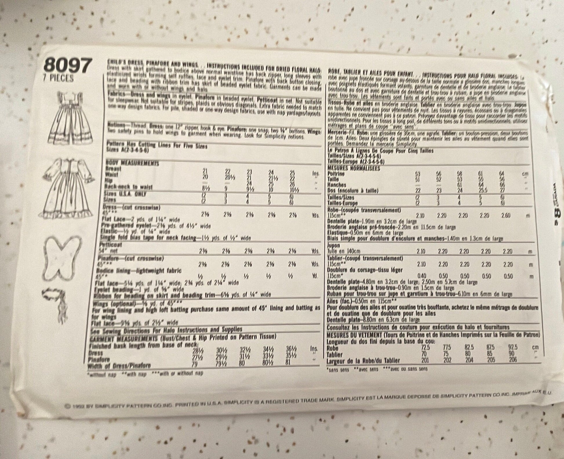 UNCUT Sewing Pattern - Simplicity 8097 Child's Dress Pinafore & Wings Costume Craft Sizes 2-6 - Christmas, Angels, Cherubs, dress, costume