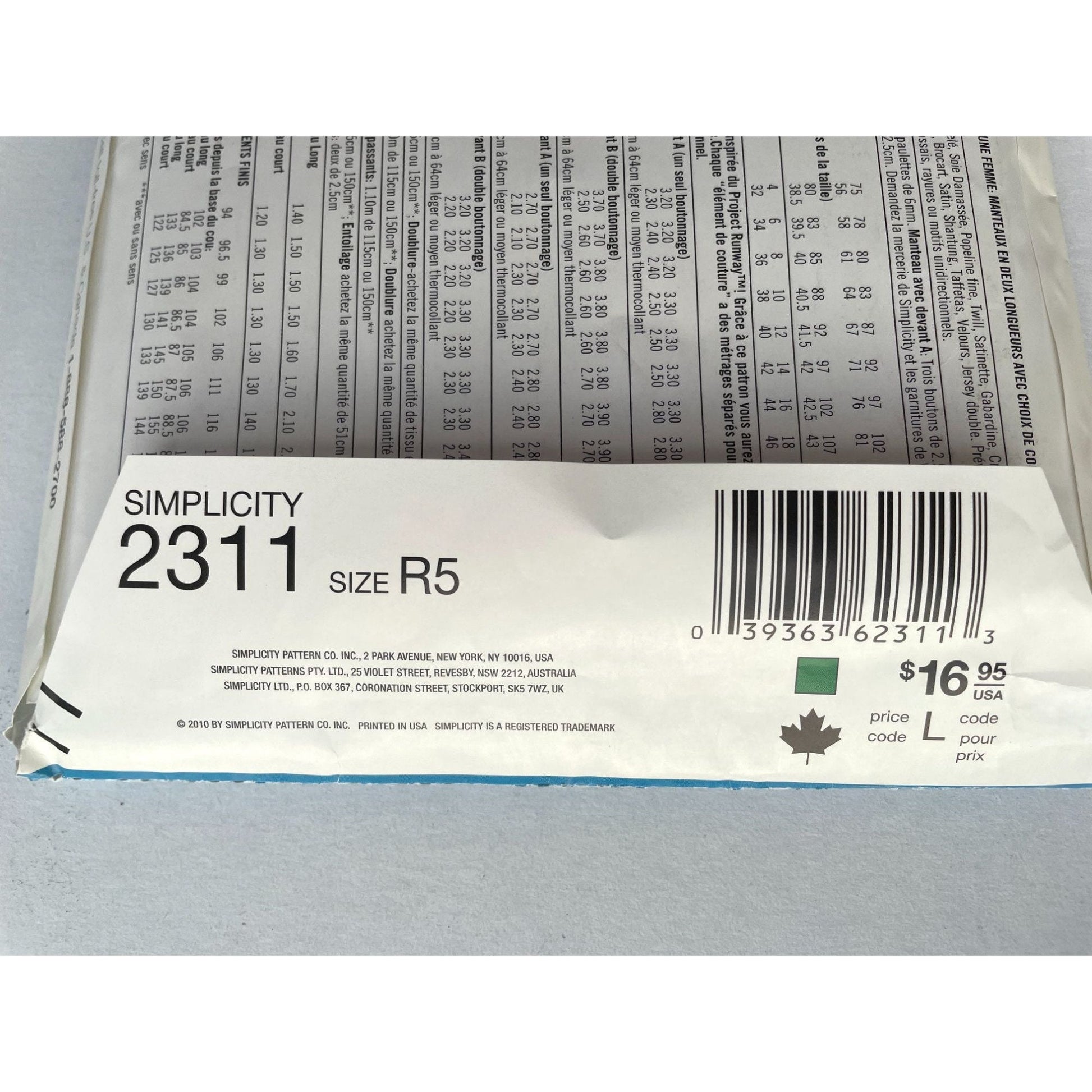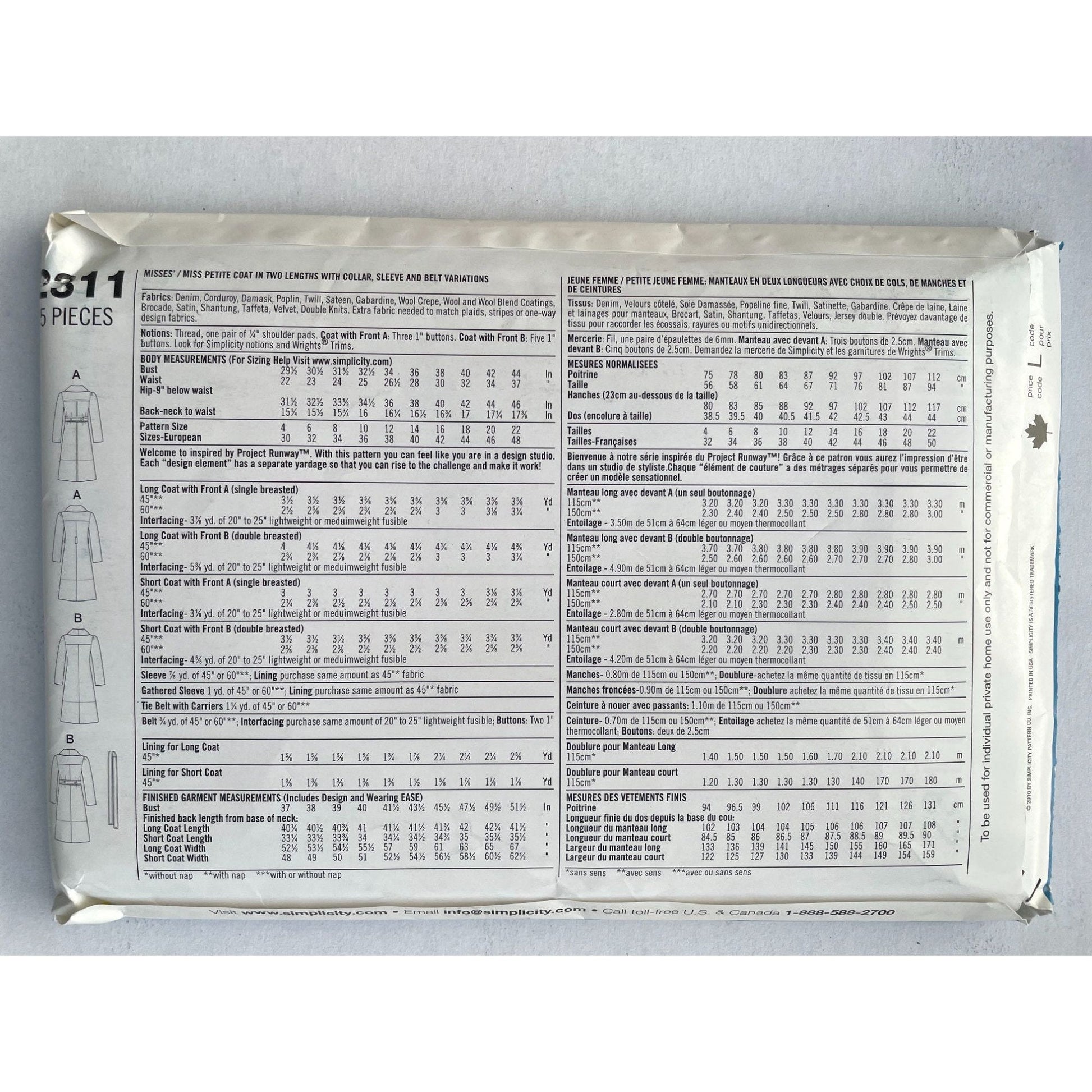 Simplicity Project Runway Misses Sz 14-22 Overcoat Pattern 0470