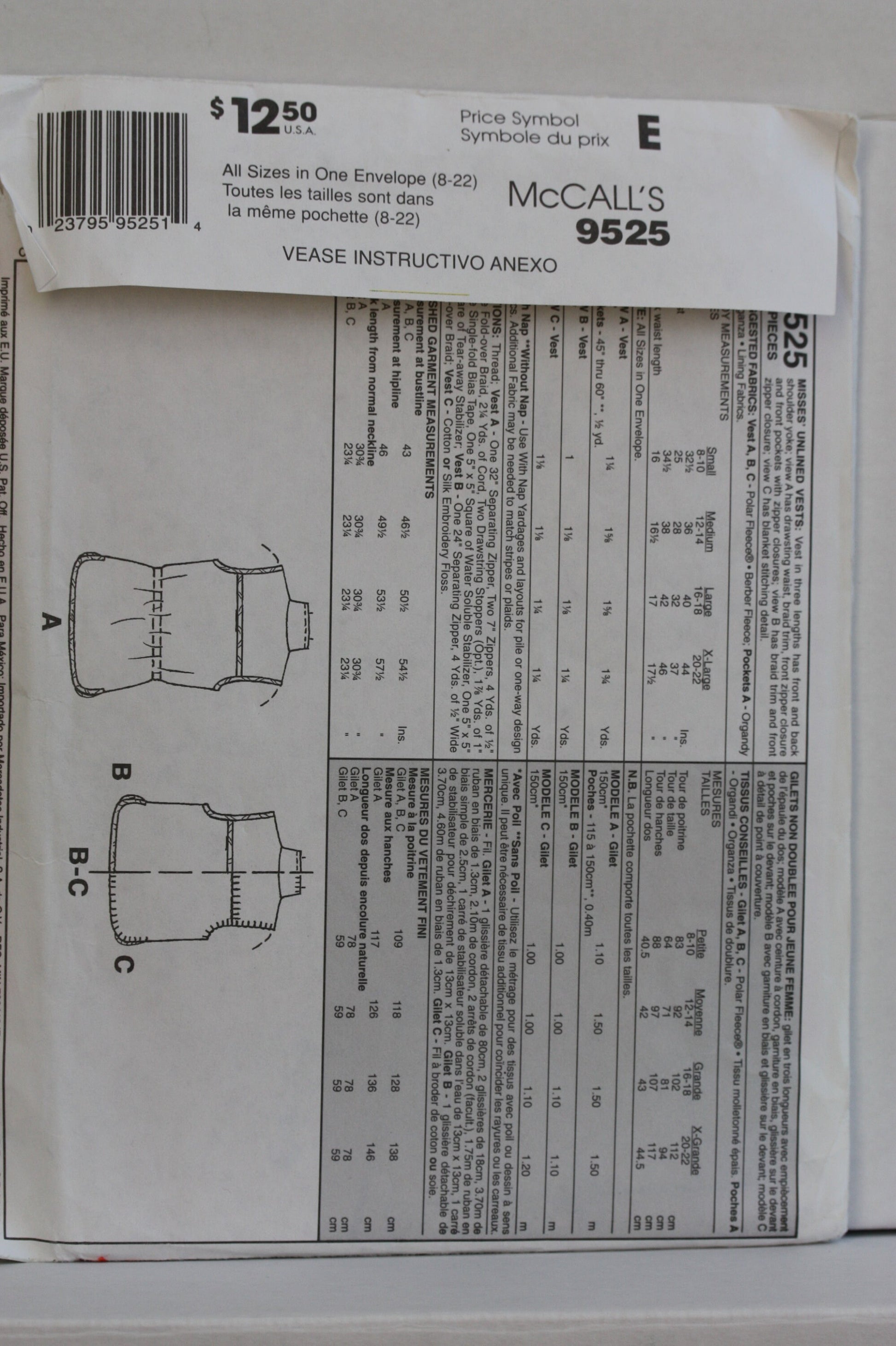 UNCUT Sewing Pattern - Vintage Sewing With Nancy McCall’s vest pattern 9525 - Sizes 8-22