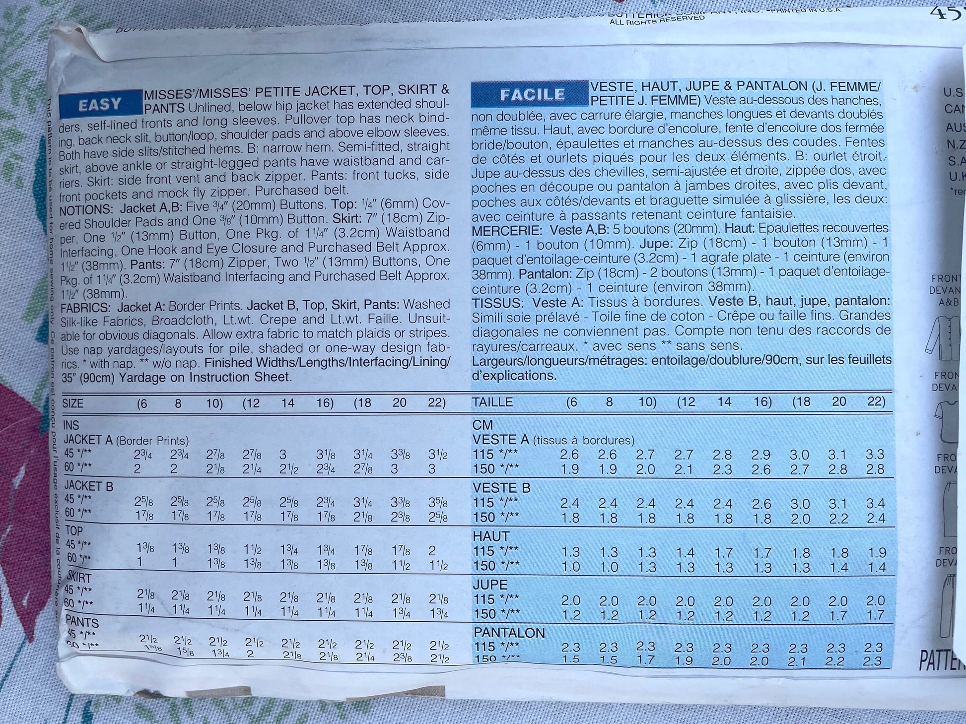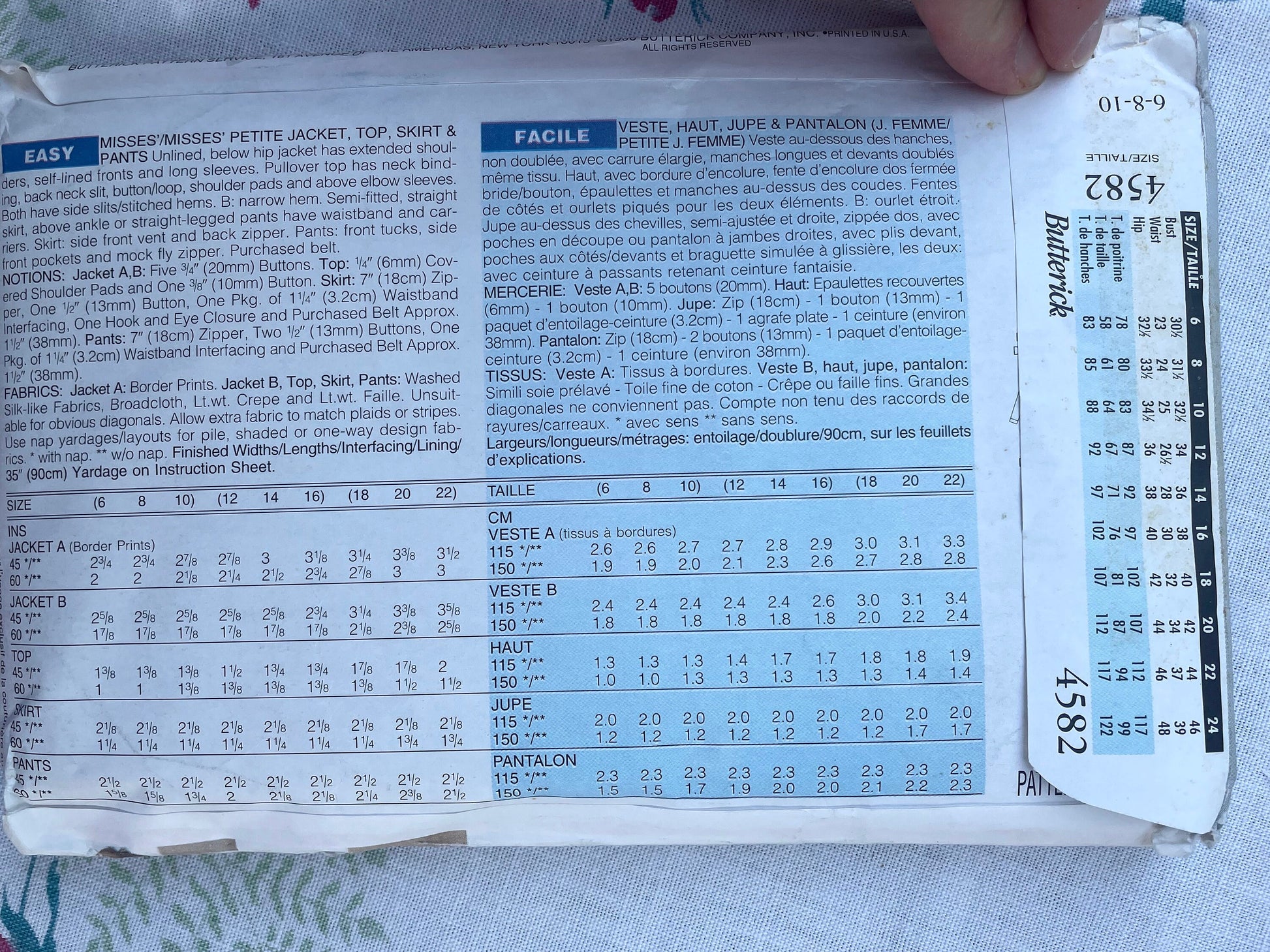 UNCUT vintage Sewing Pattern - Butterick 4582 JH Collectibles - Size Tall 6, 18, 10 - Jacket Top Skirt Pant