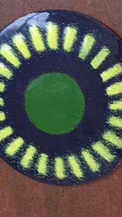 Unique mid century modern vintage enamel on copper necklace - blue, green and yellow
