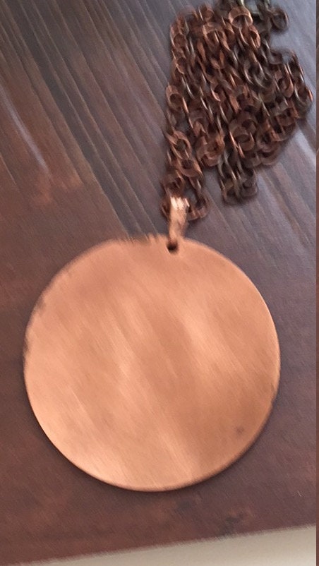 The pendant measures approx. 2 inches. It comes on a necklace chain which measures approx. 21 inches.