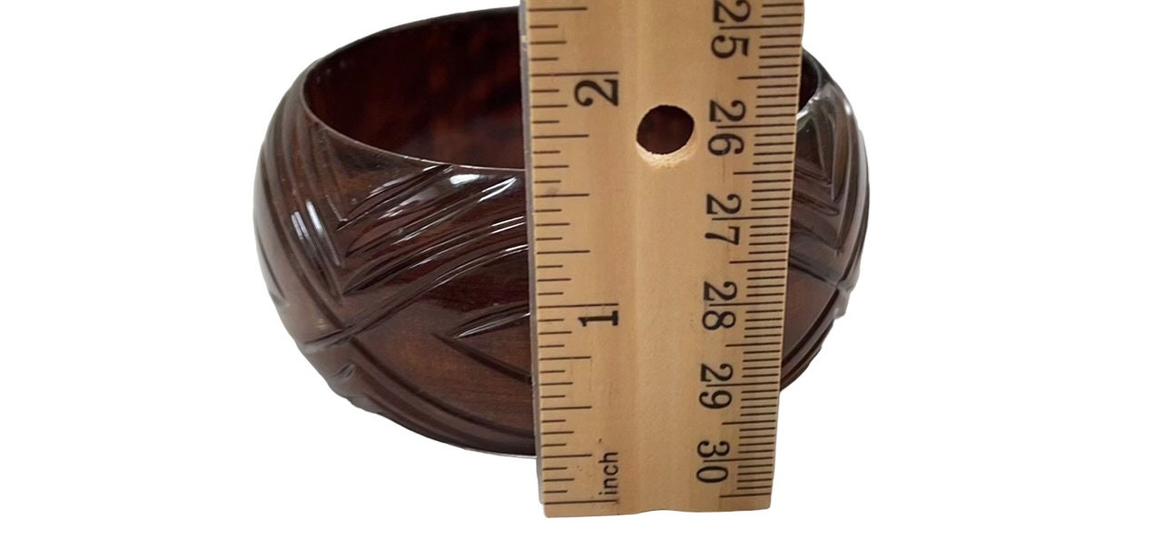 This stunning vintage bracelet measures 1 and one-quarter inches wide. The opening measures 2 and one-half inches (it's approx. 8 inches all the way around).
