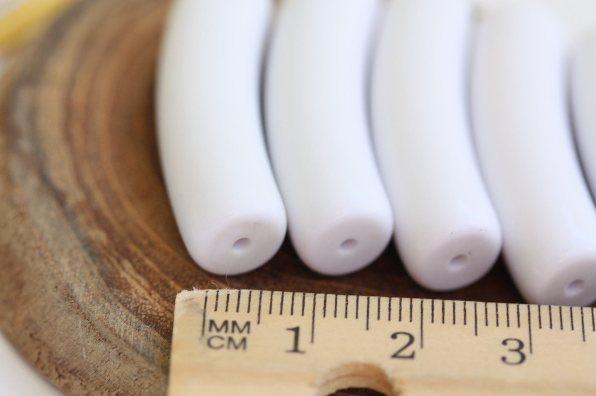 Unique white vintage slightly curved tube beads - approx. 40 mm x 7 mm