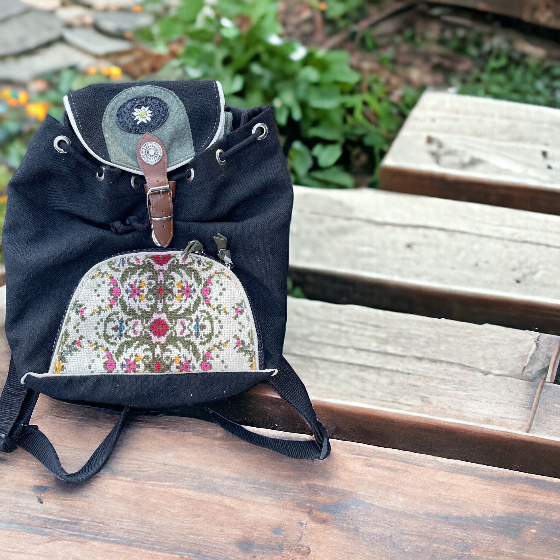 Thanks for considering this unique vintage bag. Its old school backpack vibe combined with intricate handcrafted embroidery makes it a standout addition to any collection.