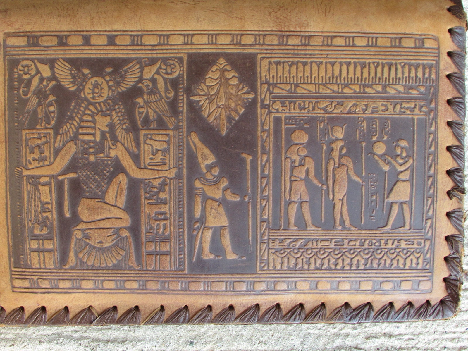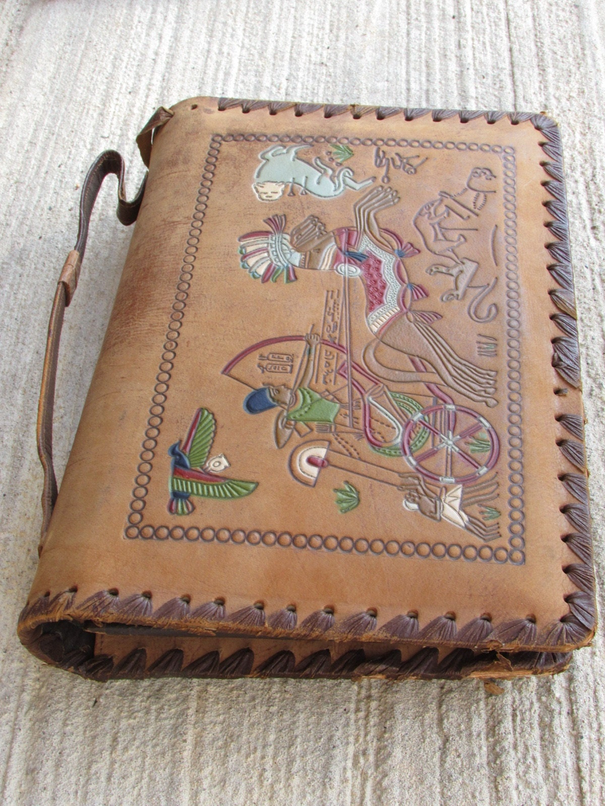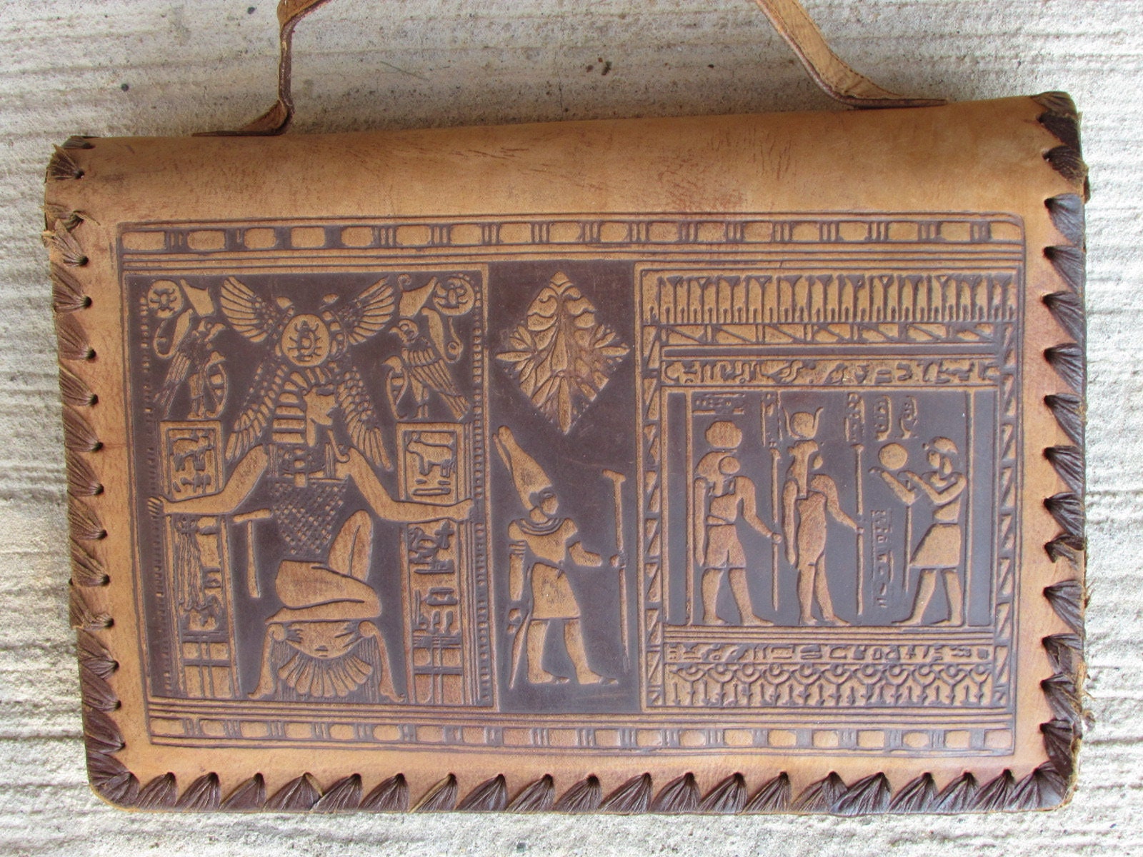 Vintage Leather Bag - Handmade Egyptian Messenger With Hieroglyphics Art