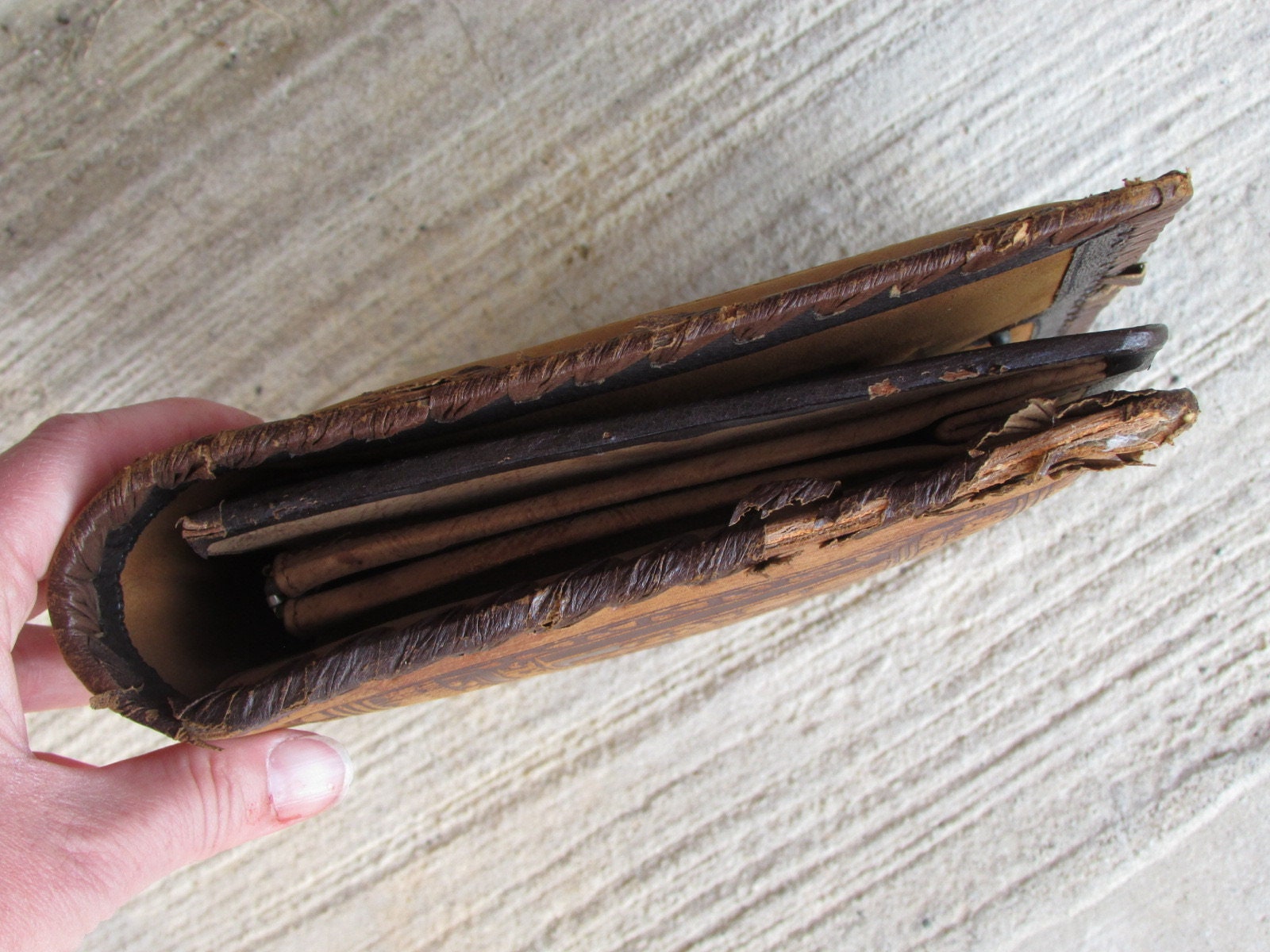 This handcrafted vintage purse has been carefully inspected to ensure quality, though it has a loose piece on one side that can be easily repaired or glued down without affecting its overall good condition. Owning this unique vintage bag means carrying a piece of history that also serves as an eye-catching fashion statement. Customers appreciate the blend of authenticity and style found in this leather bag with Egyptian art, making it a sought-after collectible.