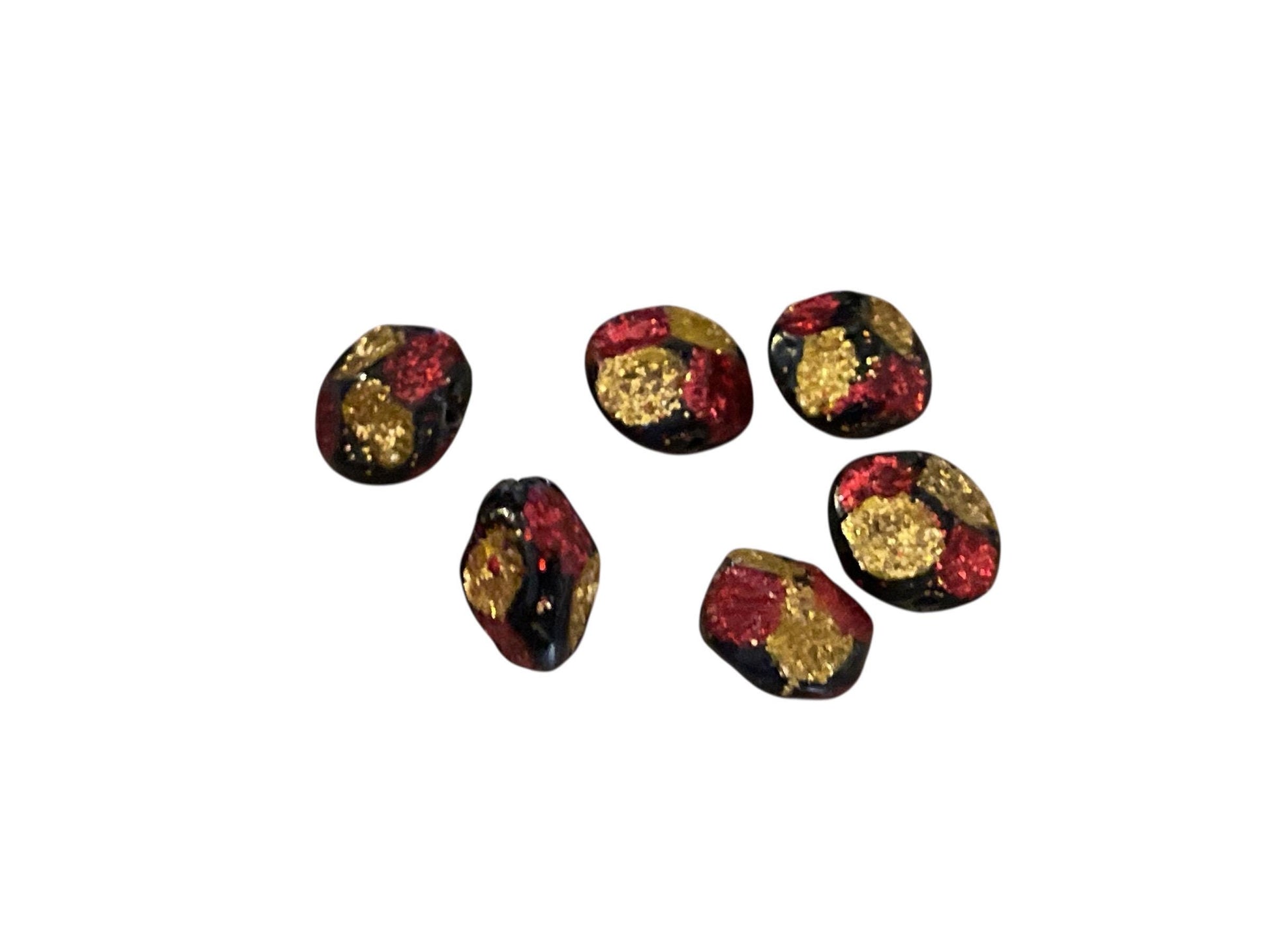 Vintage Red & Gold Glitter on uniquely shaped black Beads – for Jewelry Making