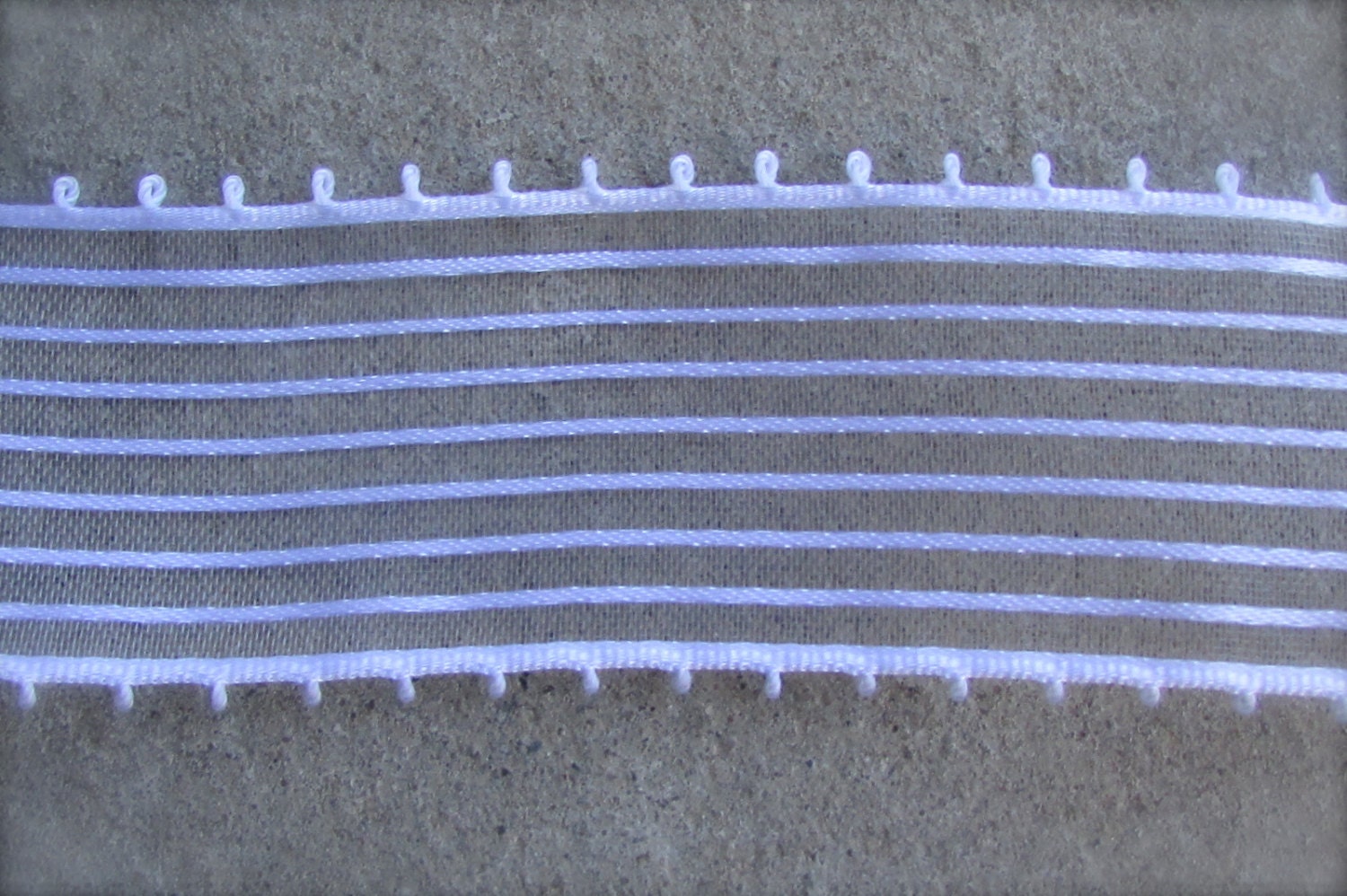 Vintage white striped ribbon/lace/trim sheer with satin stripes… 1 and one-half inches wide - by the yard