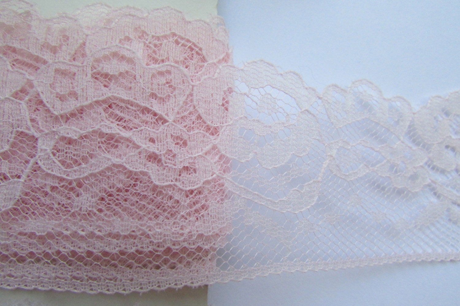 Wide vintage pink lace ribbon/lace/trim sheer… 1 and three-quarter inches wide - by the yard