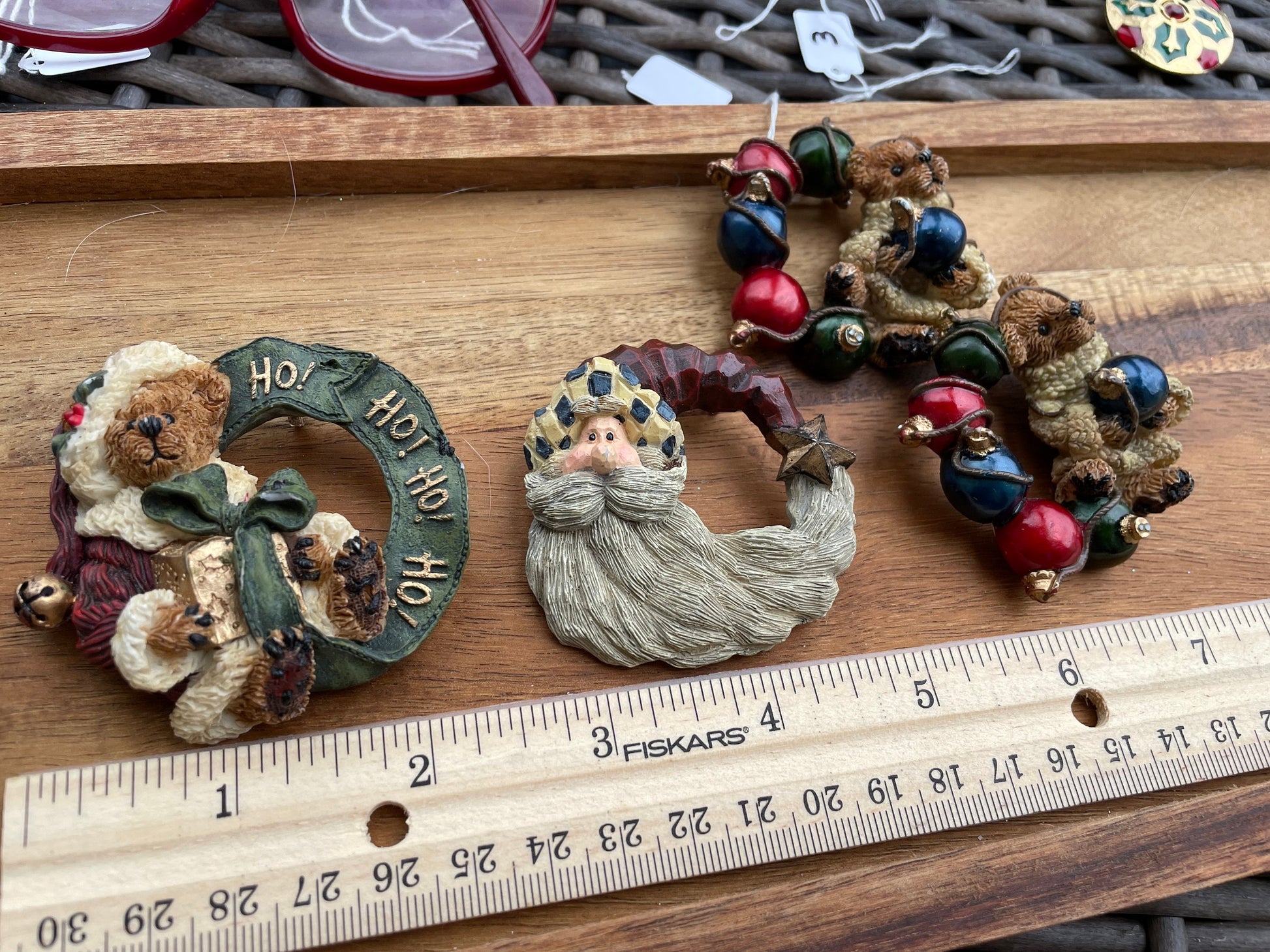 I am selling several Boyds Bears Christmas pin. The price is for one pin. Each pin measures approx 2 and 1/4" and the pins are made of resin, I believe. All are in very good condition as shown.