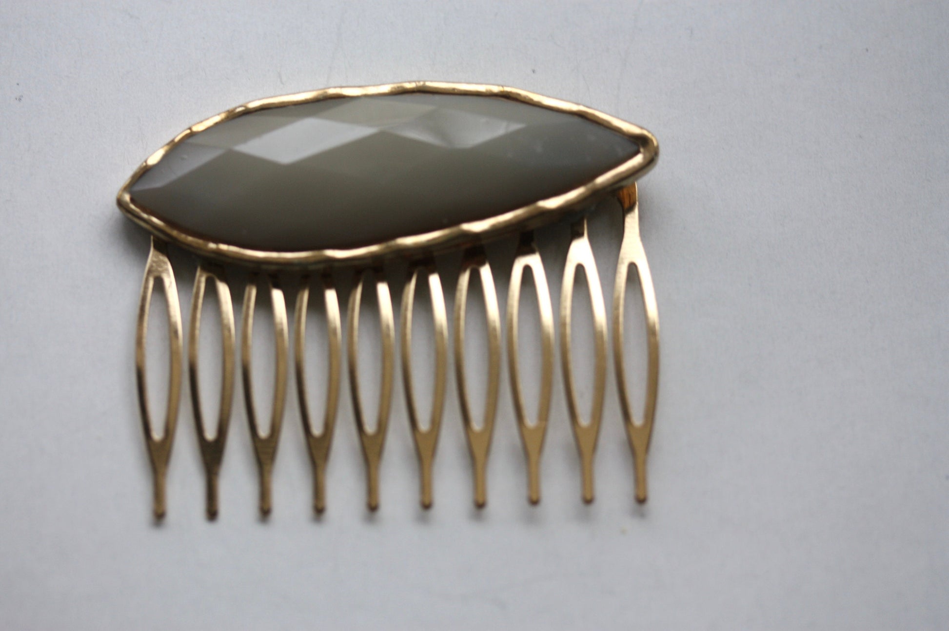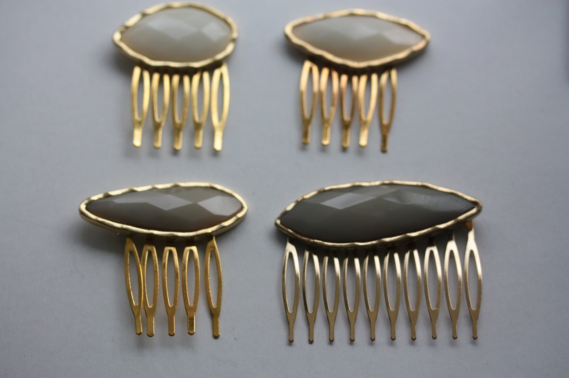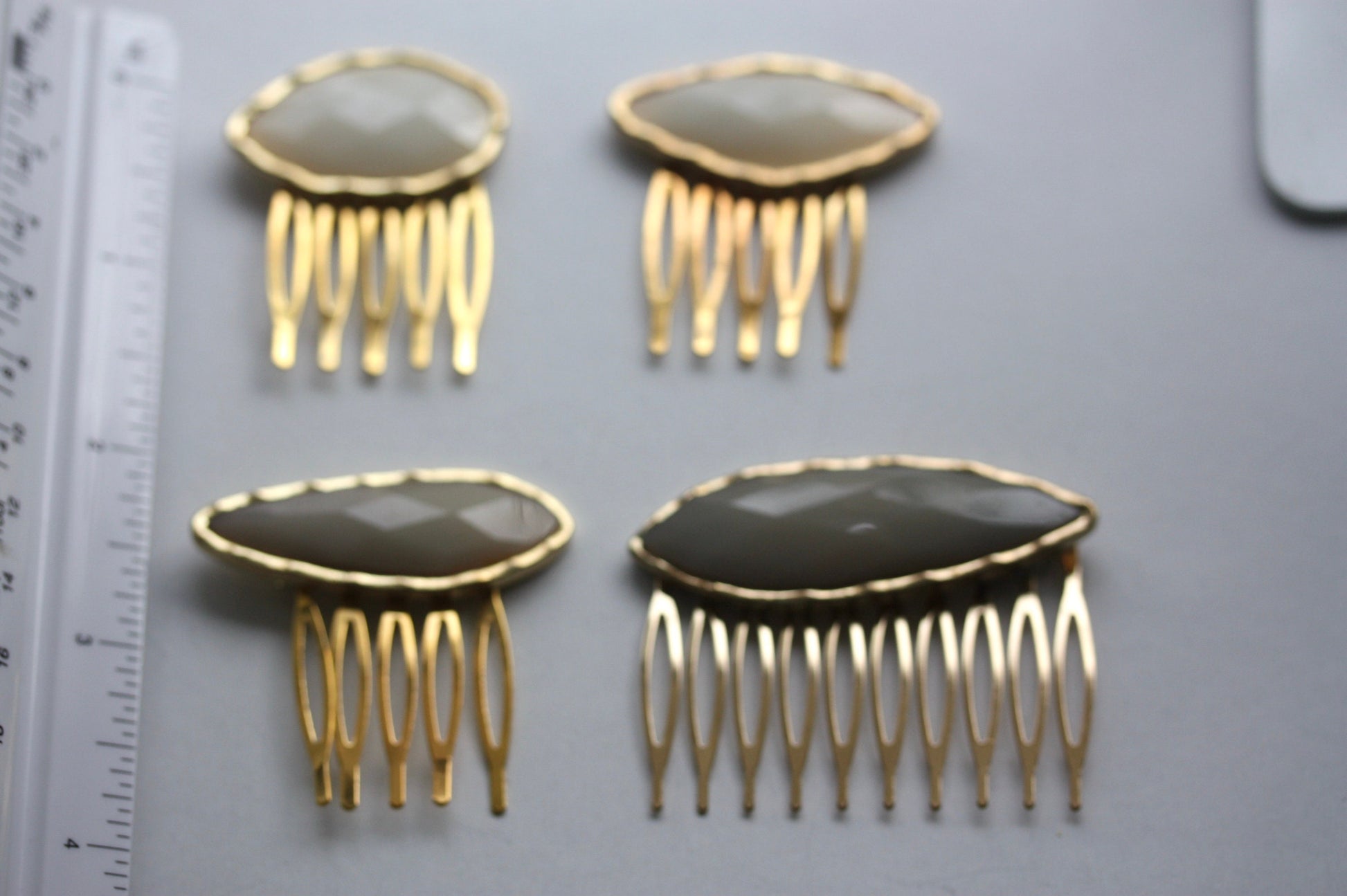 I made these using new metal combs and combining vintage plastic components. They look rich when worn but they are actually lightweight embellishments, though the metal combs add some weight and keep the pieces sturdy.